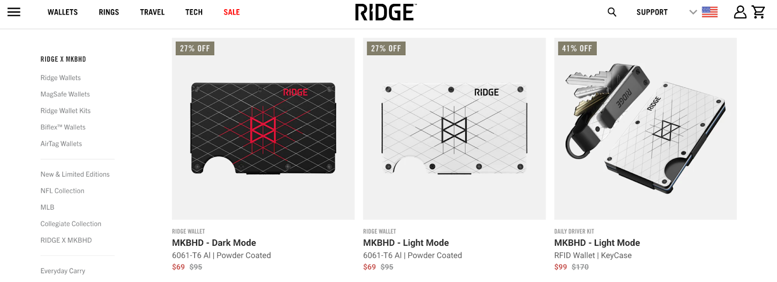 In DTC, many brands collaborate with influencers for product launches. For example, MKBHD partnered with Ridge to launch his own collection of gear: