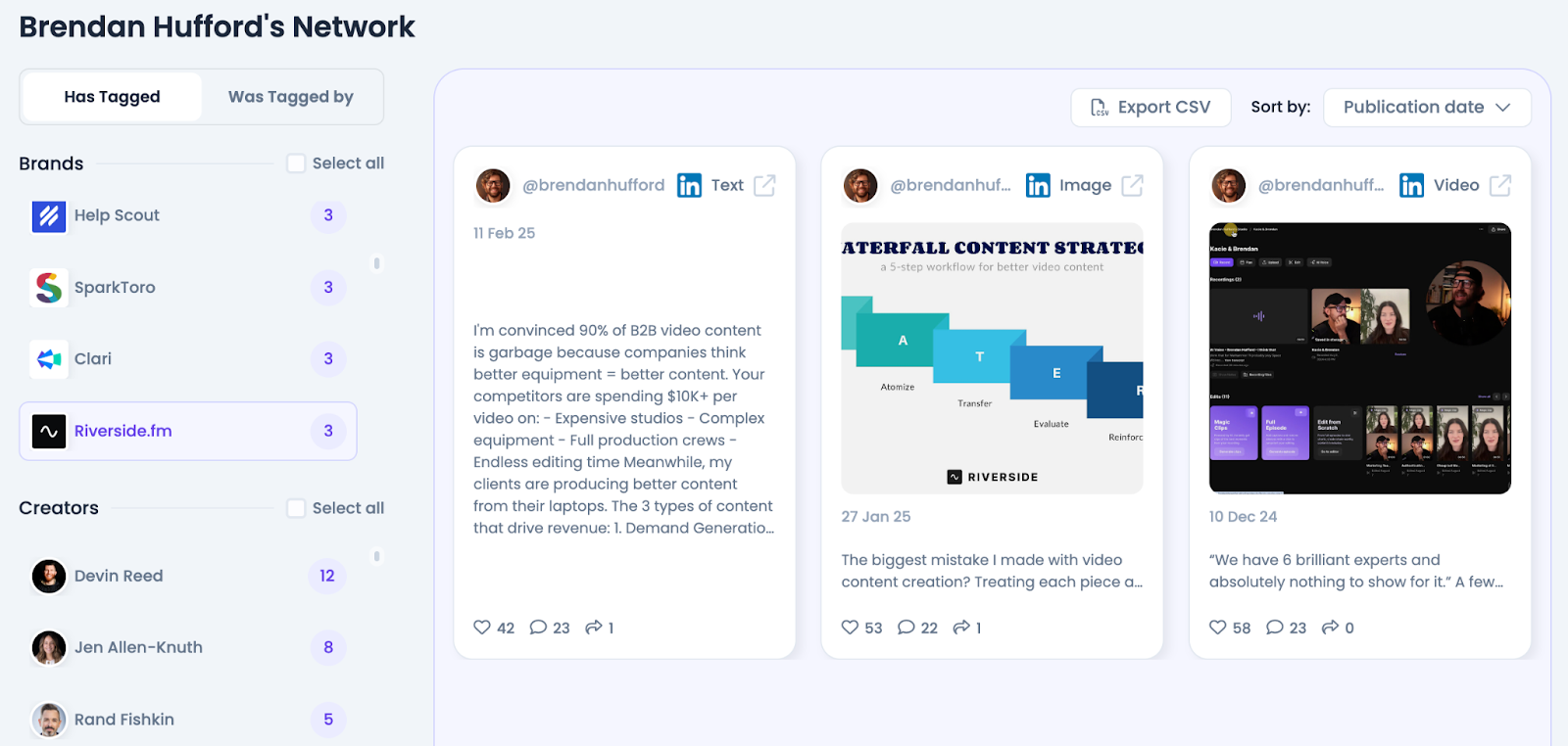 For example, I can see here that Brendan Hufford did several sponsored posts with Riverside: