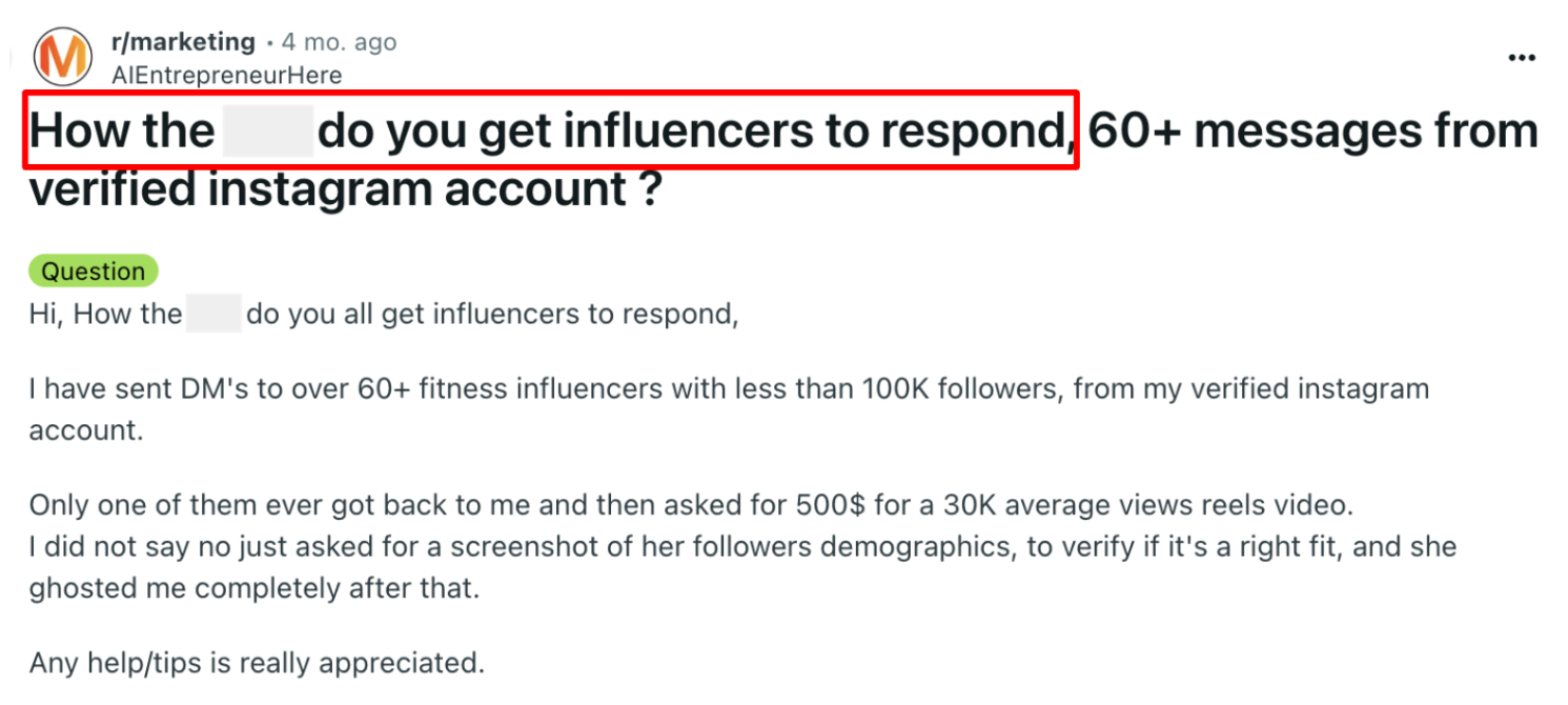I came across a Reddit thread that highlights a key challenge most influencer marketers face.