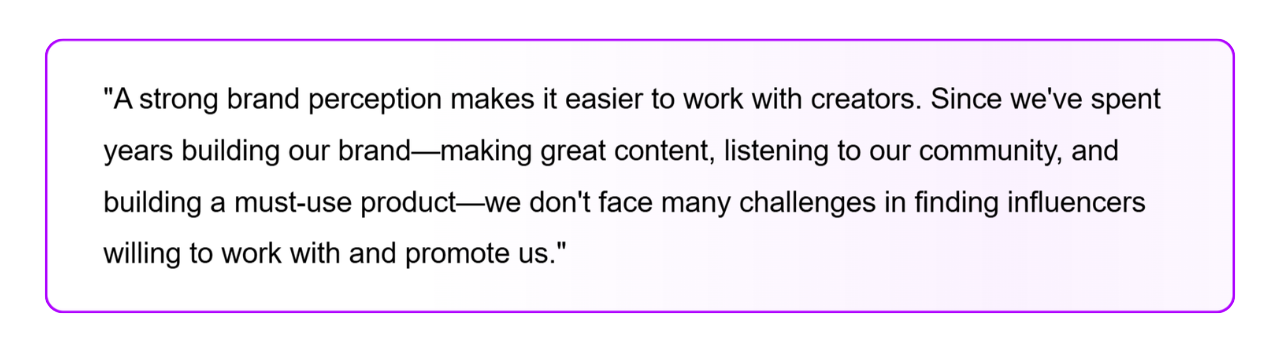 Of course, building a strong brand takes years, and building partnerships with creators will help you build that brand image.