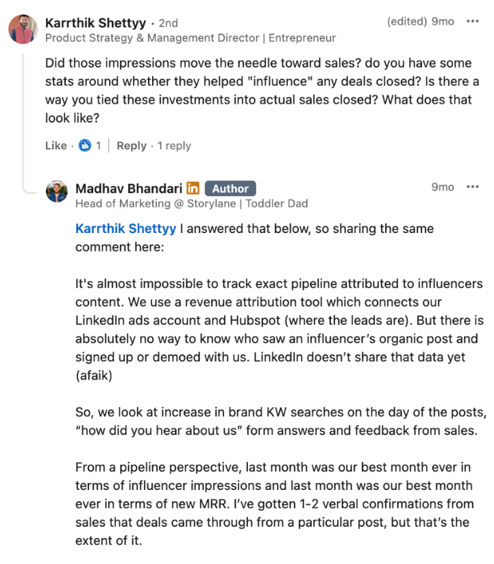 Madhav Bhandari of Storylane was also very open about the challenges of measuring the ROI of influencer marketing.