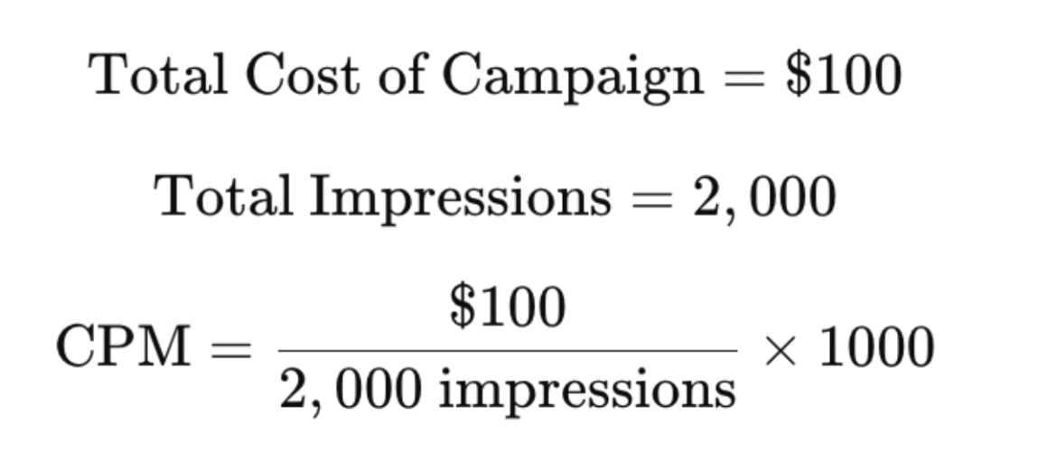 For example, if you paid $100 for a campaign that generated 2,000 impressions, your CPM would be $50.