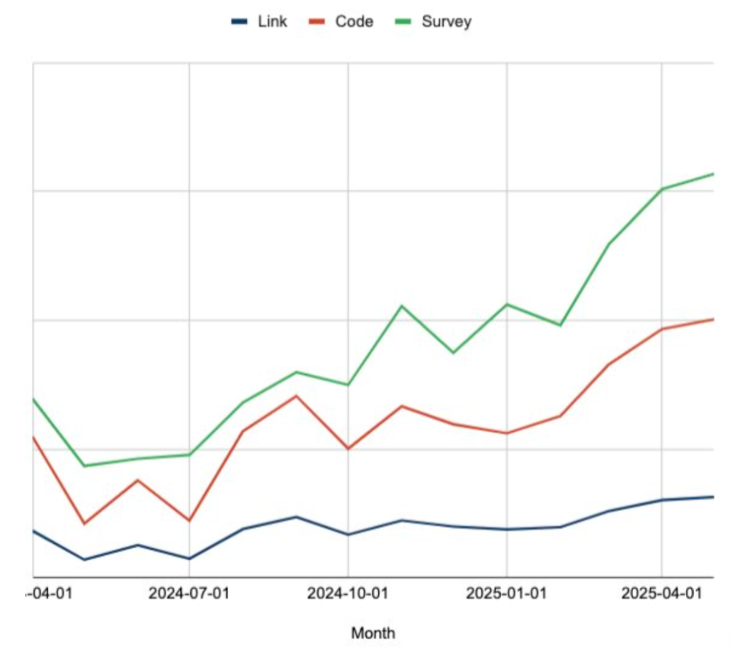 This is a key reason why Jeremy Barbara’s data shows that code usage is significantly lower than attributed survey mentions: