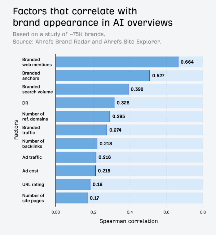 Ahrefs has more data to illustrate that earning more general mentions across the web significantly increases visibility in LLMs: