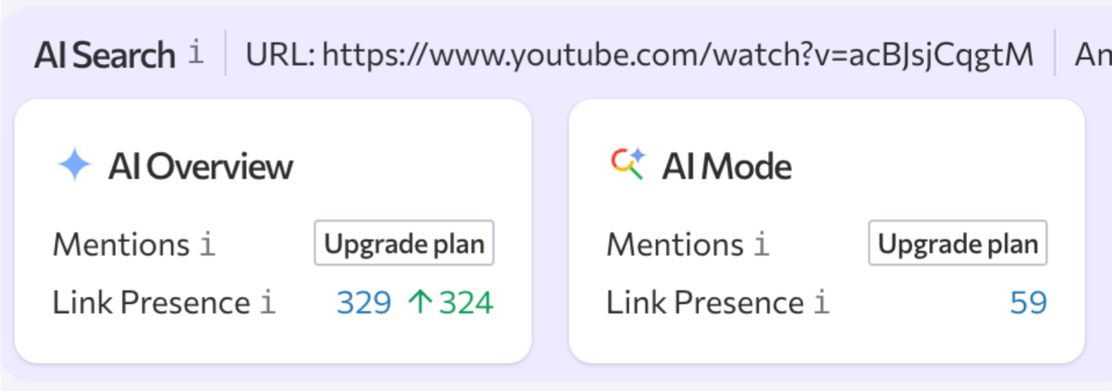 Check these stats for all of your sponsored videos to get an overview of the true impact of your sponsored videos on LLM and SEO visibility.