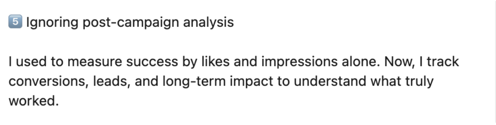 “Speaking of misleading indicators, I would say that even though brand awareness is good to track views and engagement, sometimes influencers can reach audiences that aren't the same as who you're targeting.”