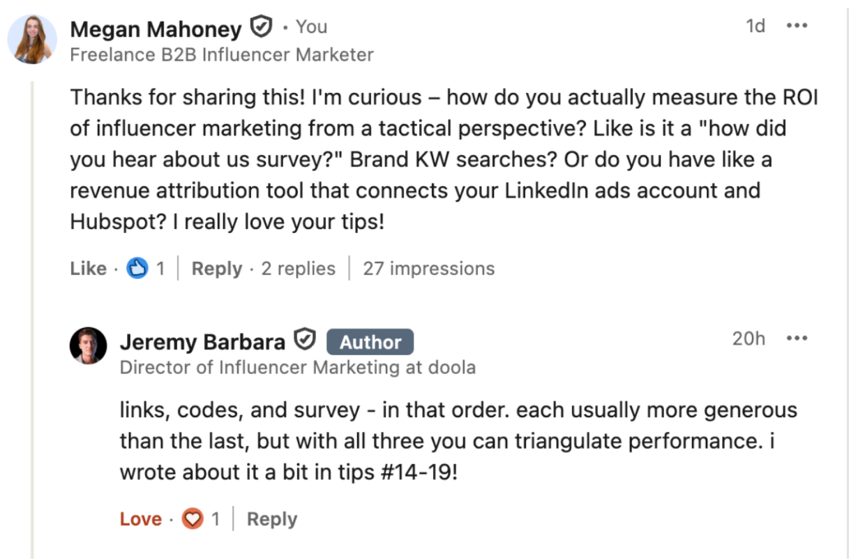 I asked Jeremy of doola how they track influencer marketing, and here’s what he had to say: