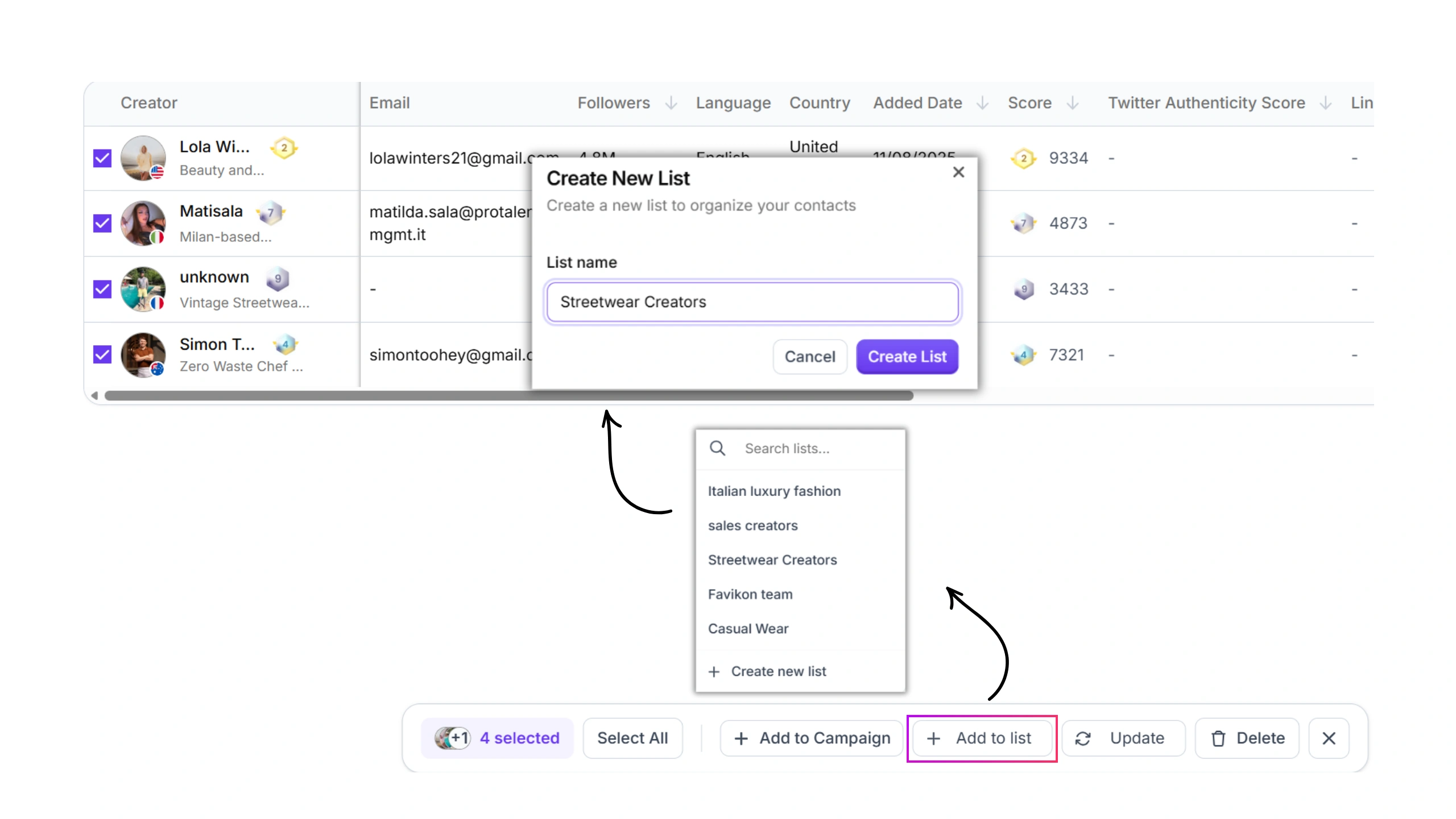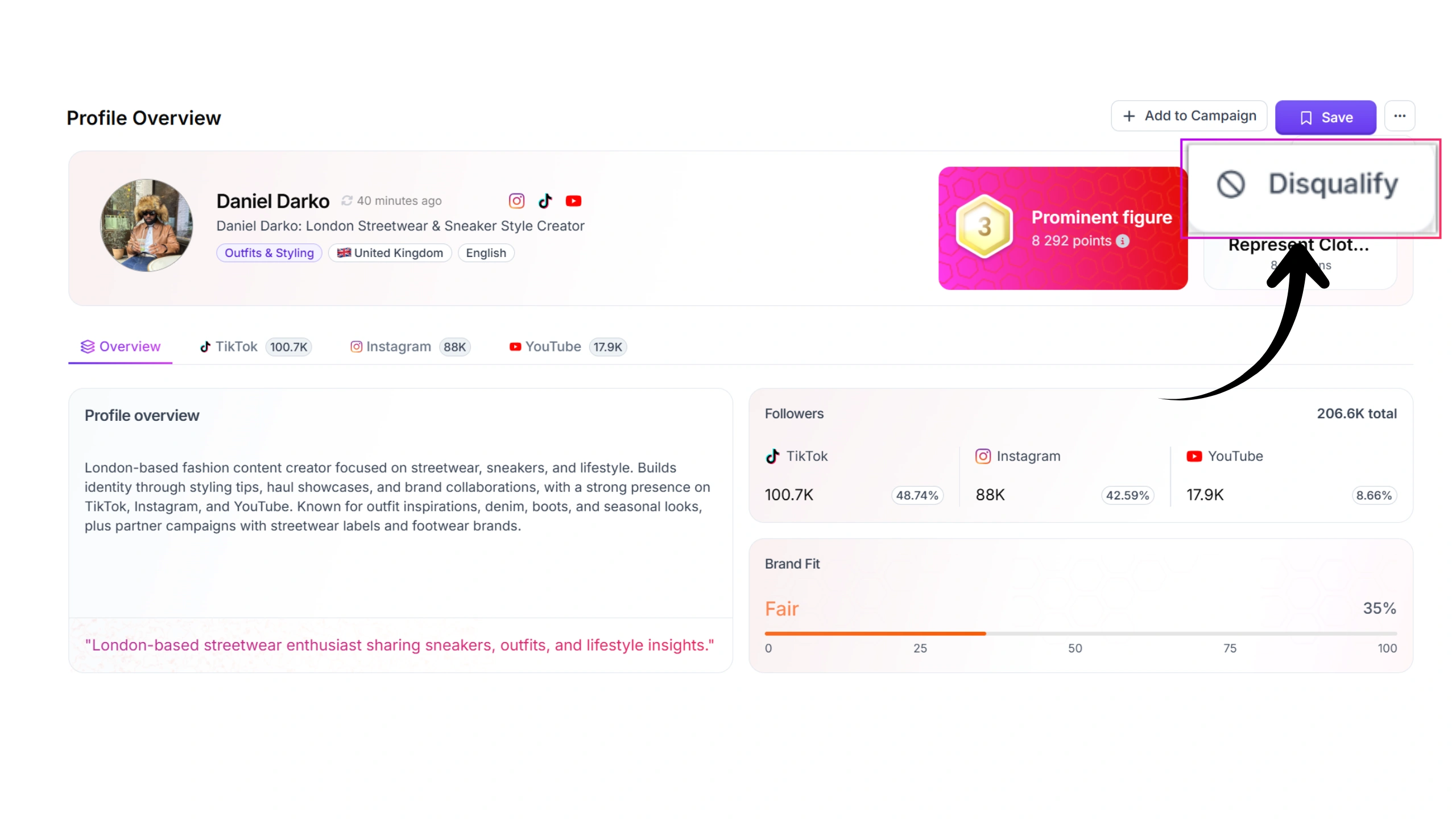Step 4: Save, Disqualify, or Add to Campaign (1 minute per creator)