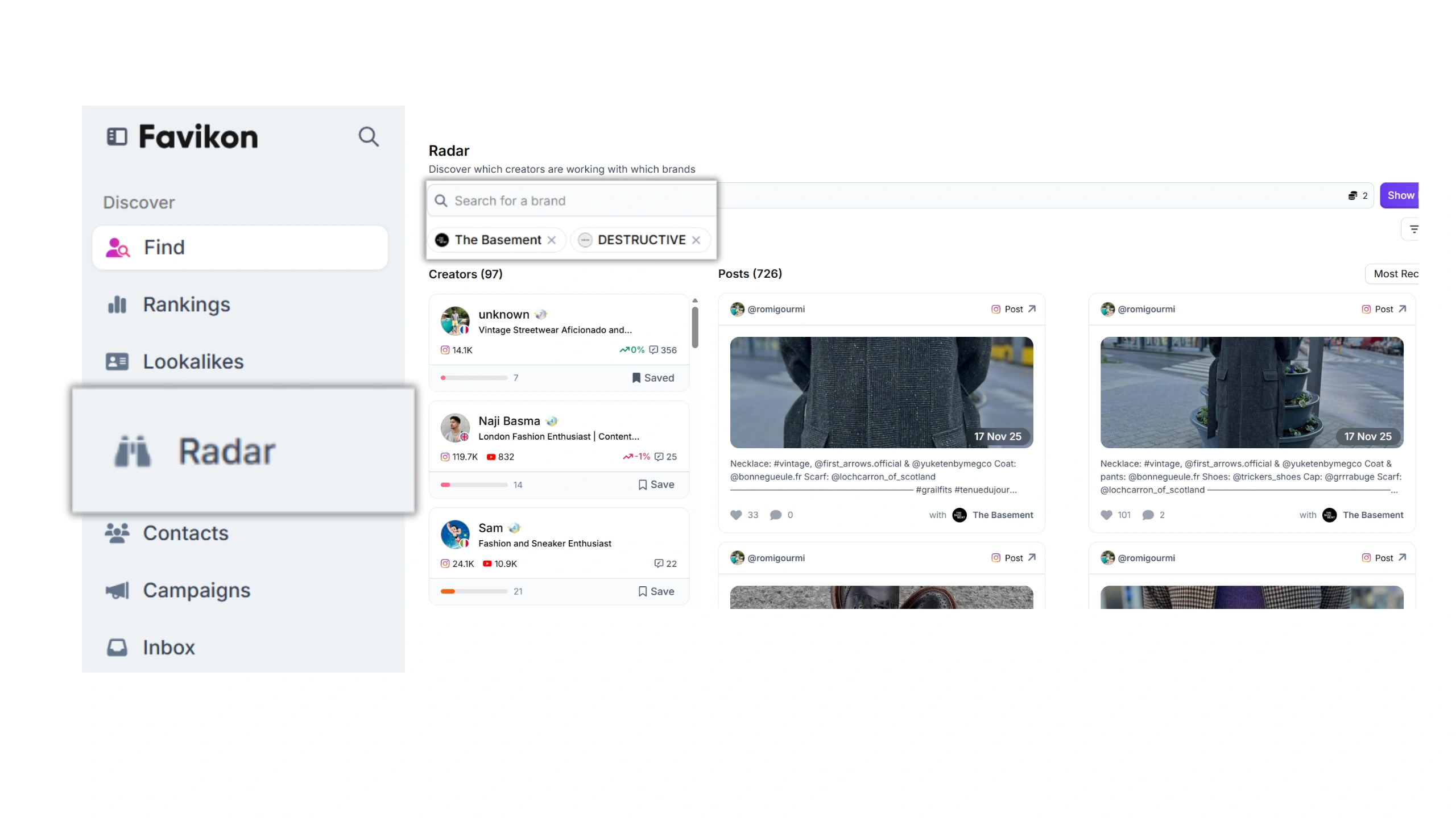 - Discovery: Find creators using natural language, filters, Radar, look-alikes, and rankings (15 min)