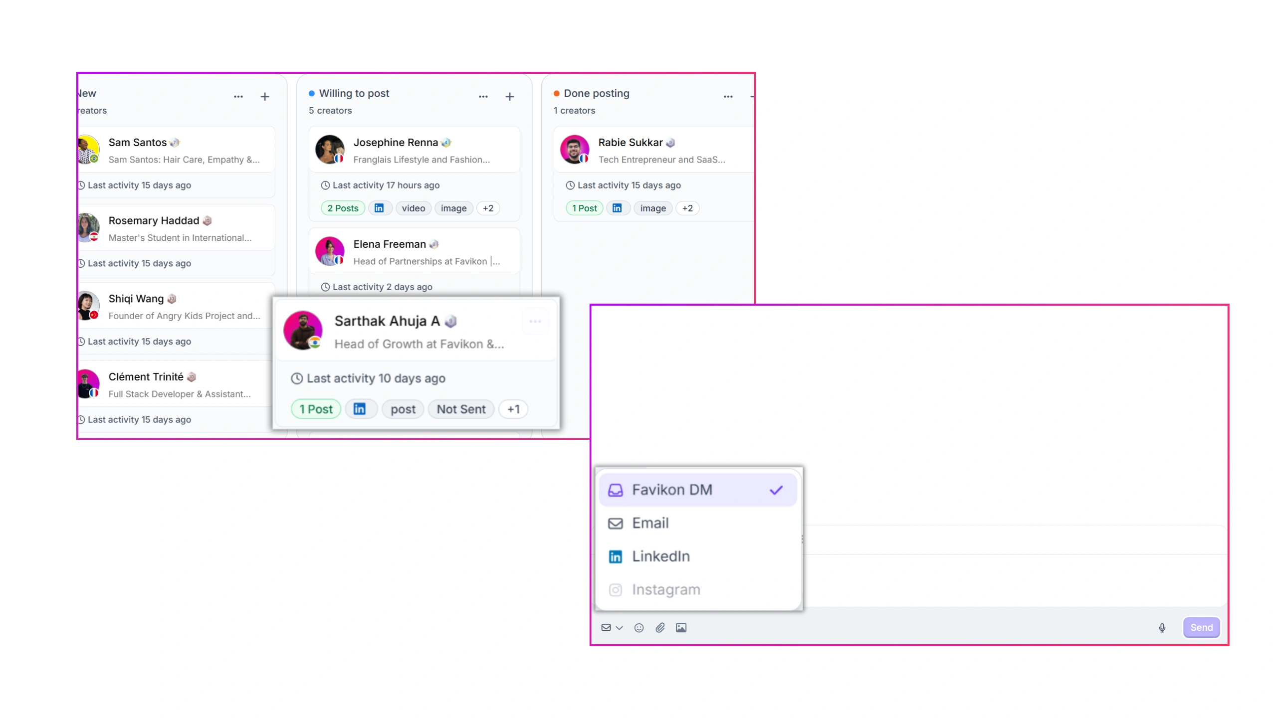 - Outreach: Message creators via email, DM, or in-platform chat (5 min per creator)