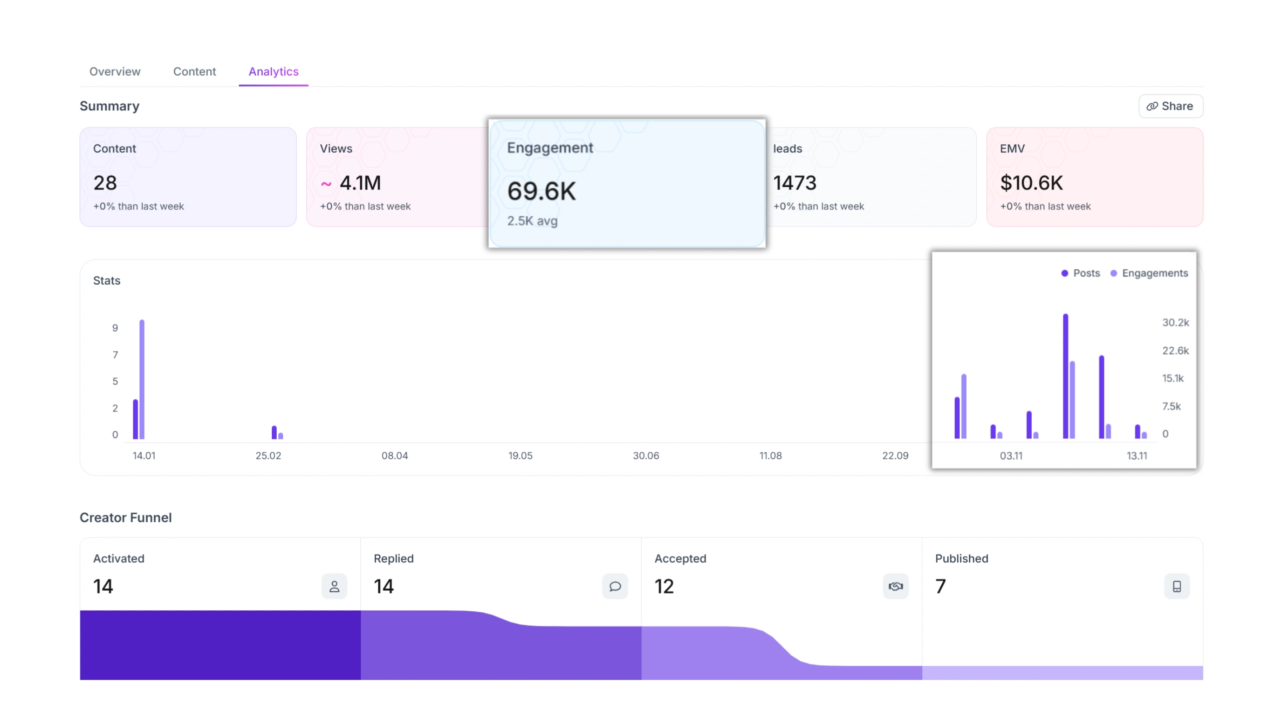 Why this matters: You're not chasing creators asking "Did you post yet?" The platform tracks everything automatically.