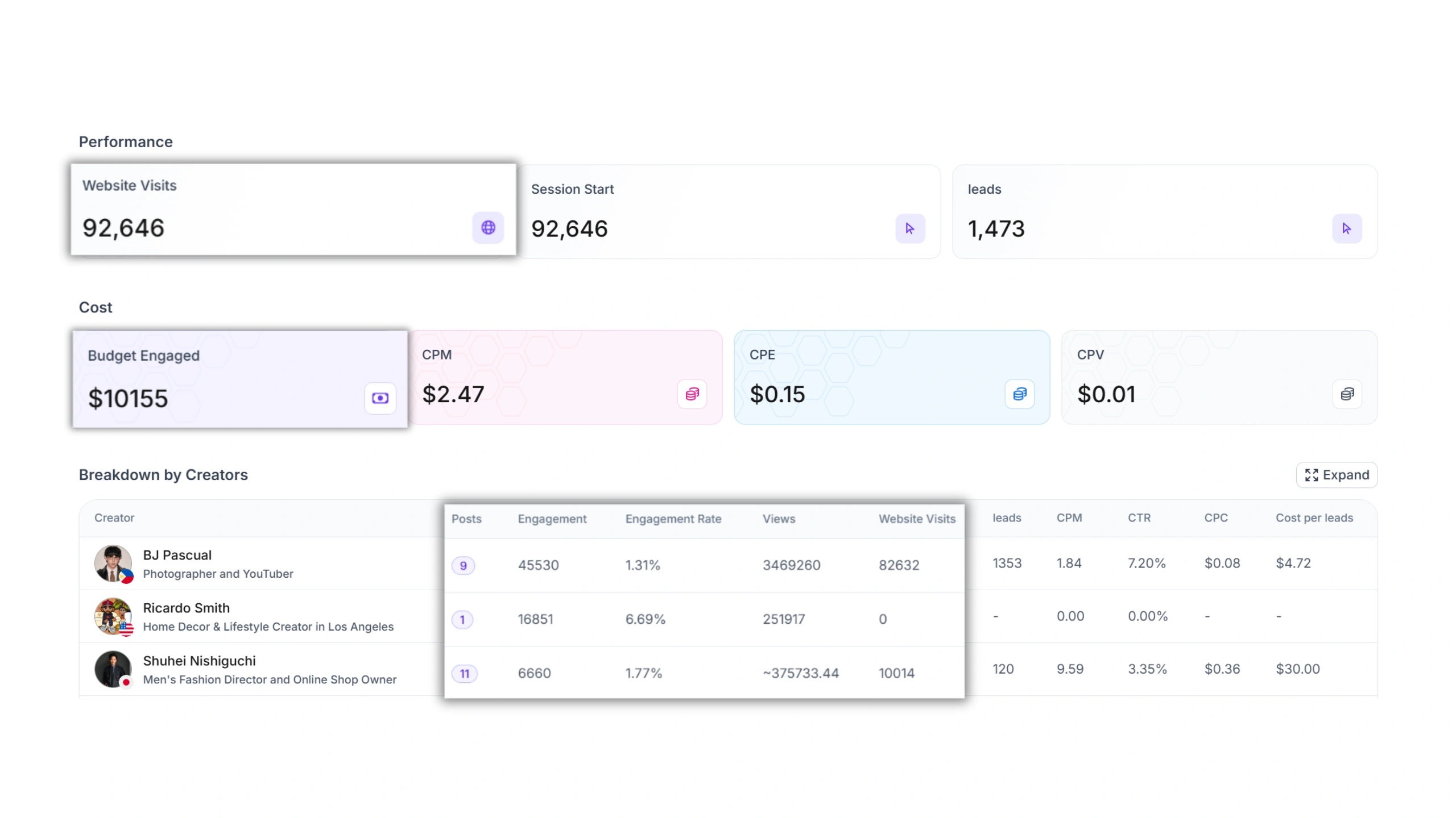 ✅ Full transparency on every creator, metric, and cost✅ Permanent data ownership—campaign history stays with you✅ Scalable workflows to manage 20-200 creators with the same team size✅ Faster execution—campaigns live in days, not months✅ Better ROI—more budget to creators, less to middlemen✅ Real-time insights—optimize while campaigns are running✅ Authenticity checks—fraud detection built-in