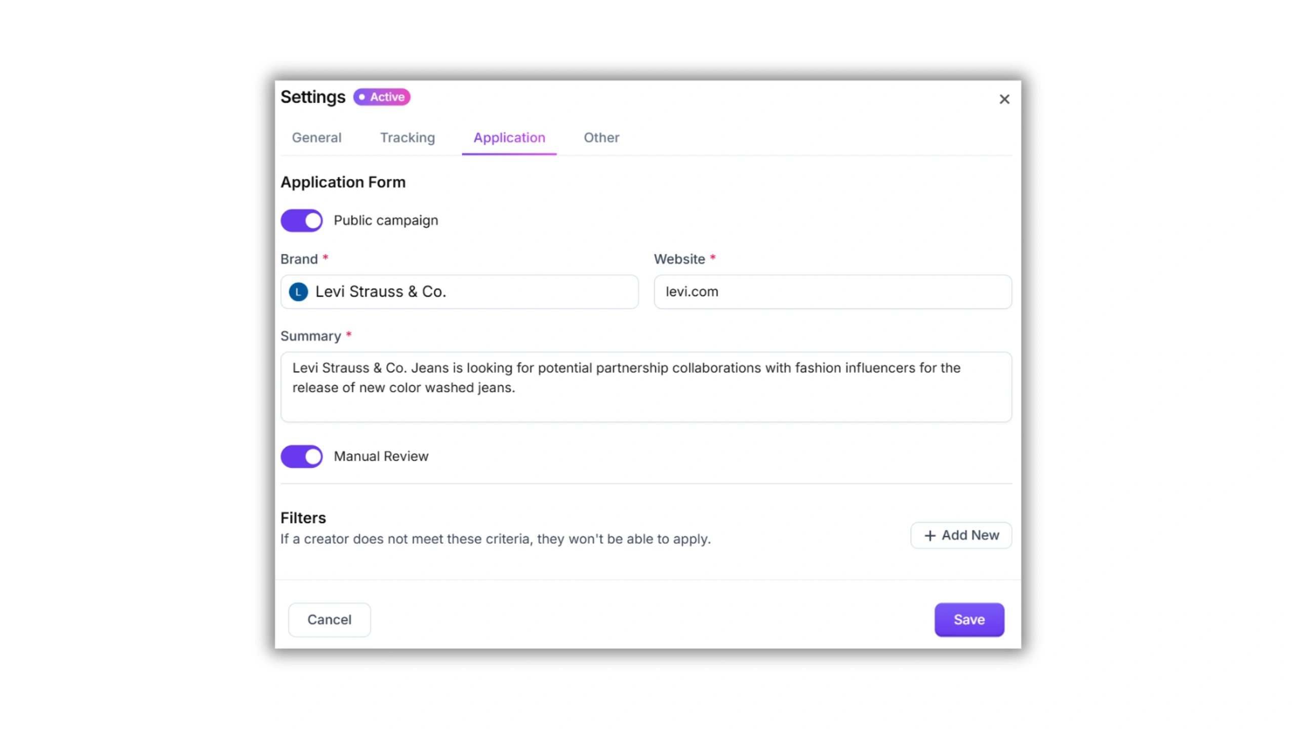 Example: Levi's makes their streetwear campaign public. A micro-influencer with 15K followers who's been wearing Levi's for years applies. They're already passionate about the product—no need to "sell" them on the partnership.
