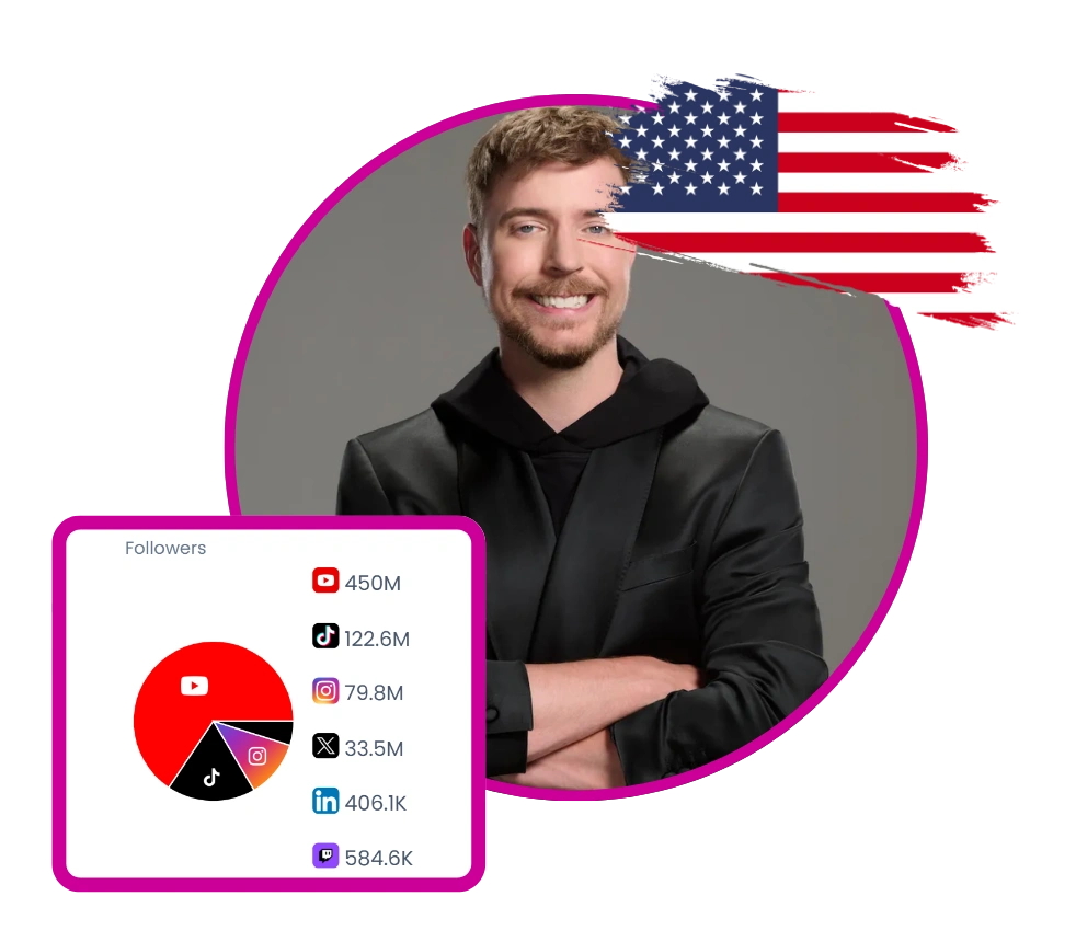 Jimmy Donaldson, known as MrBeast, is a prominent YouTuber and philanthropist recognized for his extravagant challenges and charitable initiatives. His content often features large-scale giveaways, fundraising for environmental causes, and unique competitions. He has raised millions for various charities and is known for his engaging and entertaining style. His recent projects include 'Beast Games' on Prime Video and collaborations with major brands. He actively promotes his merchandise and various business ventures.