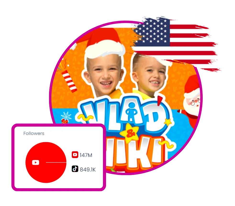 Vlad & Niki, the global preschool phenomenon, are brothers who star in non-stop fun and crazy adventures on their YouTube channel. With over 456 million subscribers and 248 billion views, they create comedic videos for kids in 18 languages. Each episode features a mix of live action, animation, and music. The channel is owned by Content Media Group FZC, LLC, led by Sergey and Victoria Vashketov, the parents of Vlad and Niki.