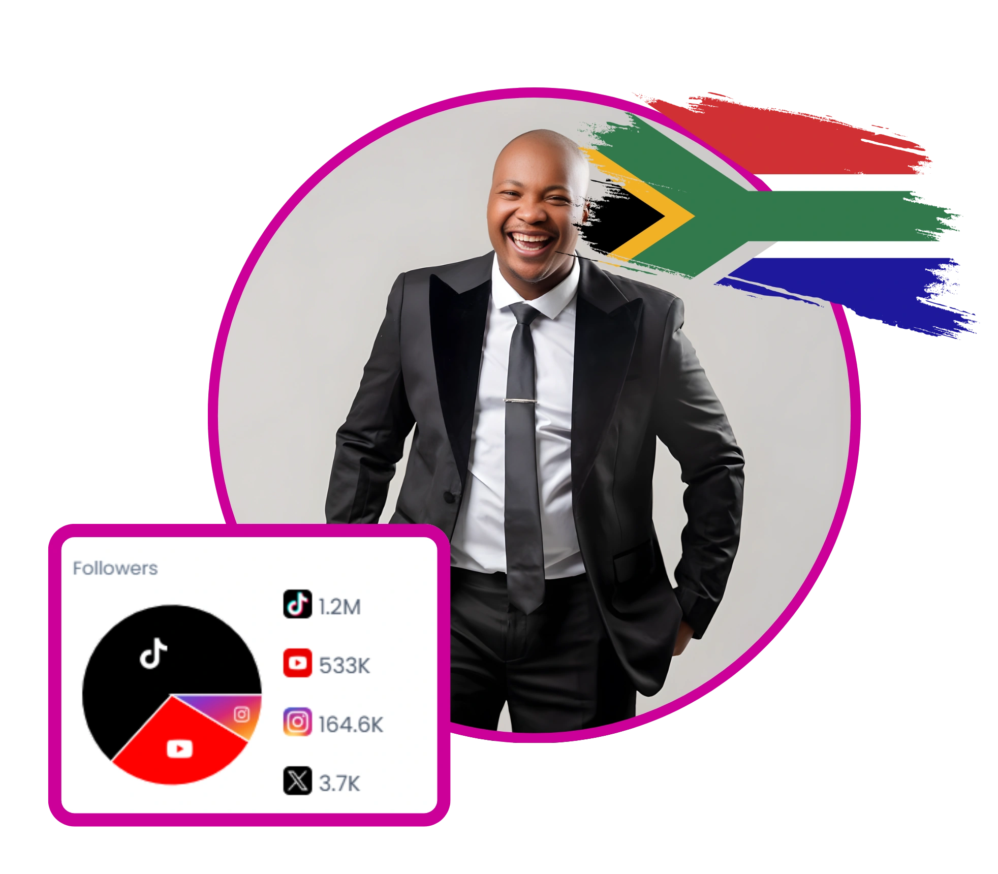 Mthandeni Dlamini Mahlaba is a South African comedian, filmmaker, animator, writer, and actor with a significant online presence. He boasts over 1 million YouTube subscribers and engages audiences through comedic sketches and storytelling, particularly in his series 'uDlamini YiStar'. His content often features humor and relatable themes, appealing to a broad audience. He actively promotes collaborations and sponsorships, showcasing a blend of entertainment and brand partnerships.