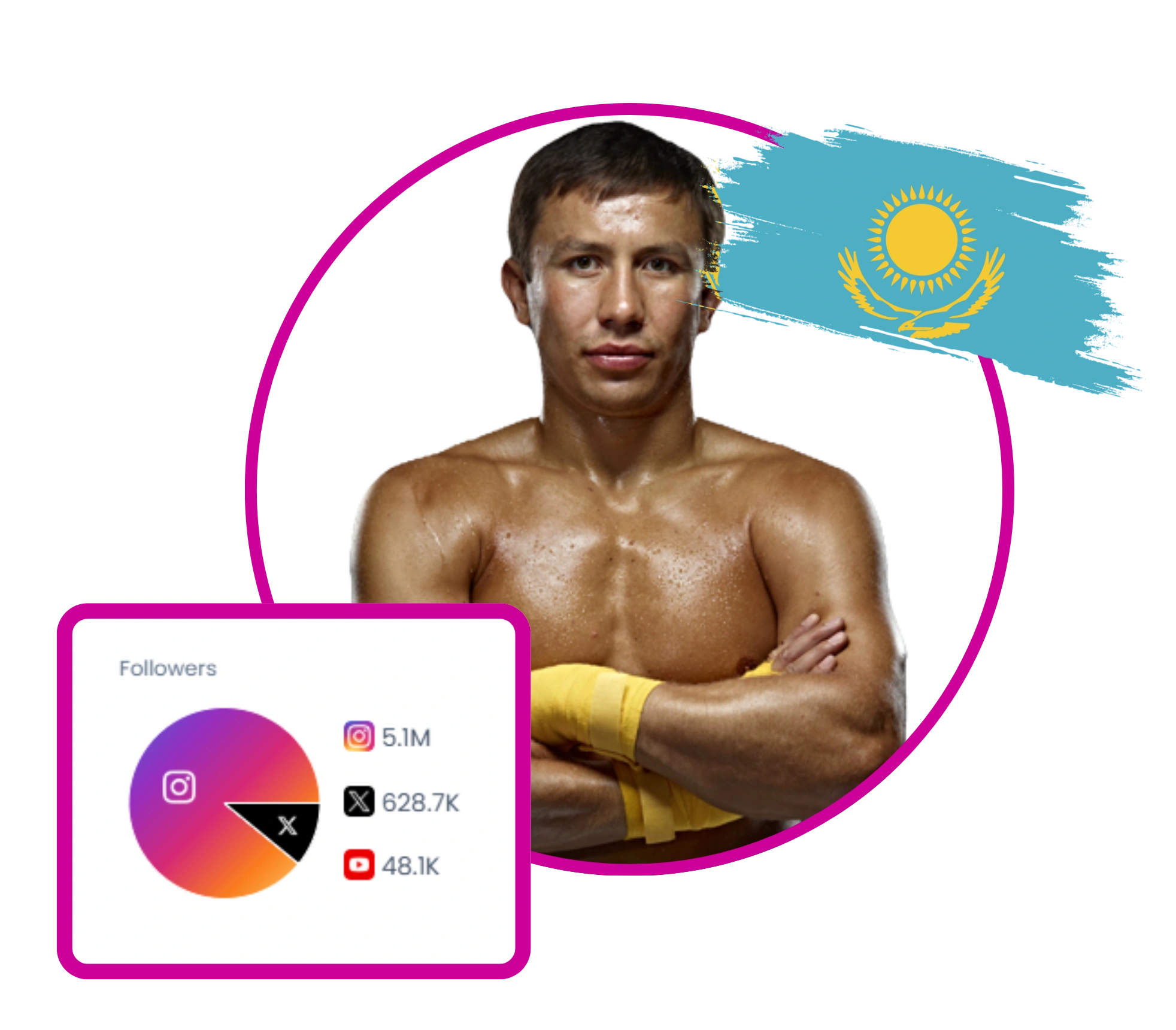Two-time Olympic boxing champion and president of Kazakhstan's National Olympic Committee, Gennadiy Golovkin blends elite sport with governance. Across Instagram, YouTube, and Twitter he shares training insights, leadership updates, and support for Kazakh athletes, while advocating to keep boxing in the Olympic program. His content fuses competition excellence, mentorship, and national pride for a global sports audience.