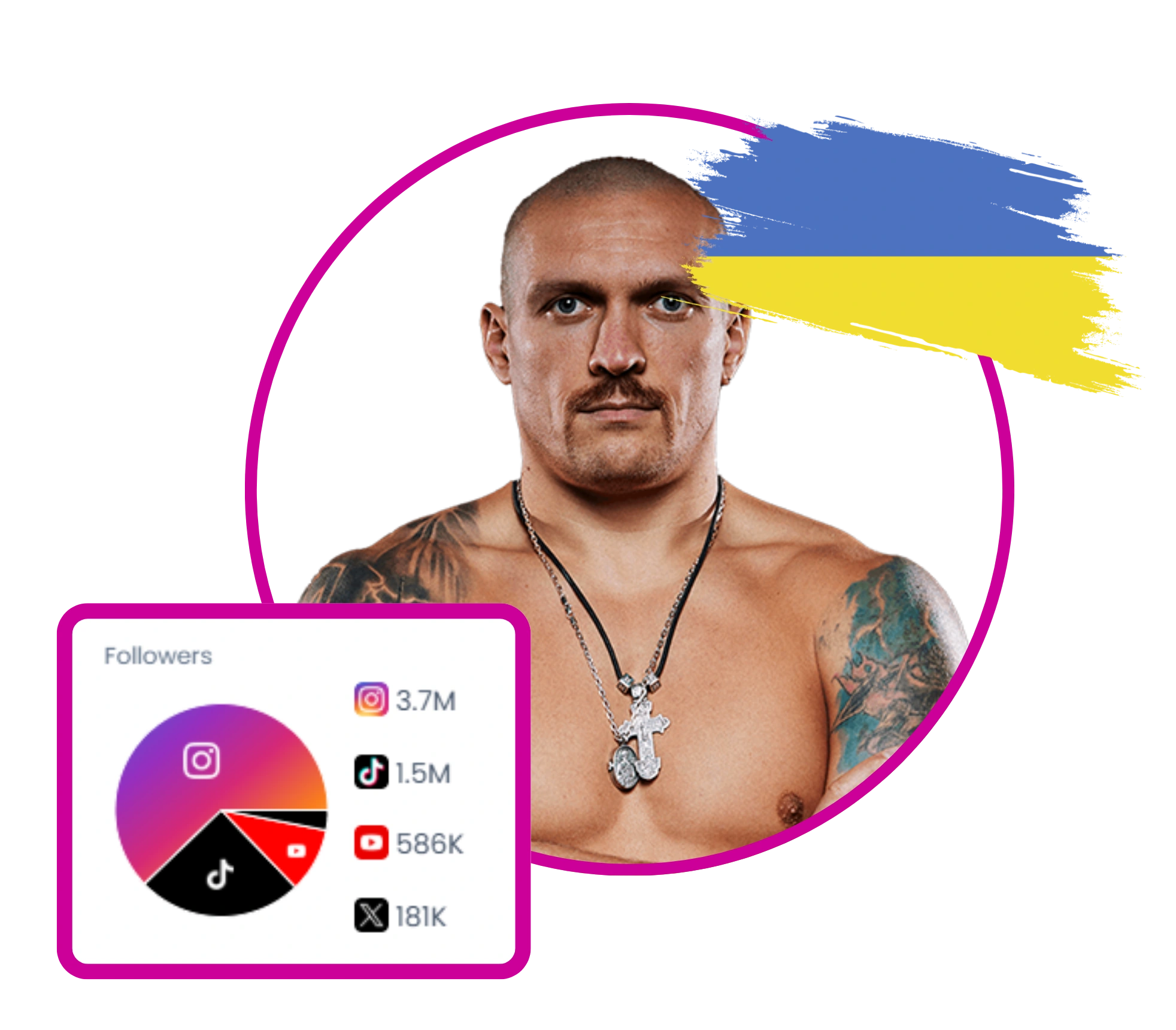 Oleksandr Usyk is a three-time undisputed heavyweight boxing champion, co-founder of @rtfight_com, and a prominent figure in the sports world. He shares insights into his training, personal life, and boxing career across platforms like Instagram, TikTok, YouTube, and Twitter. Usyk frequently posts about his matches, motivational speeches, and public appearances, often emphasizing themes of discipline, faith, and resilience. He also engages in collaborations, product promotions, and real estate ventures, showcasing a multifaceted public presence.