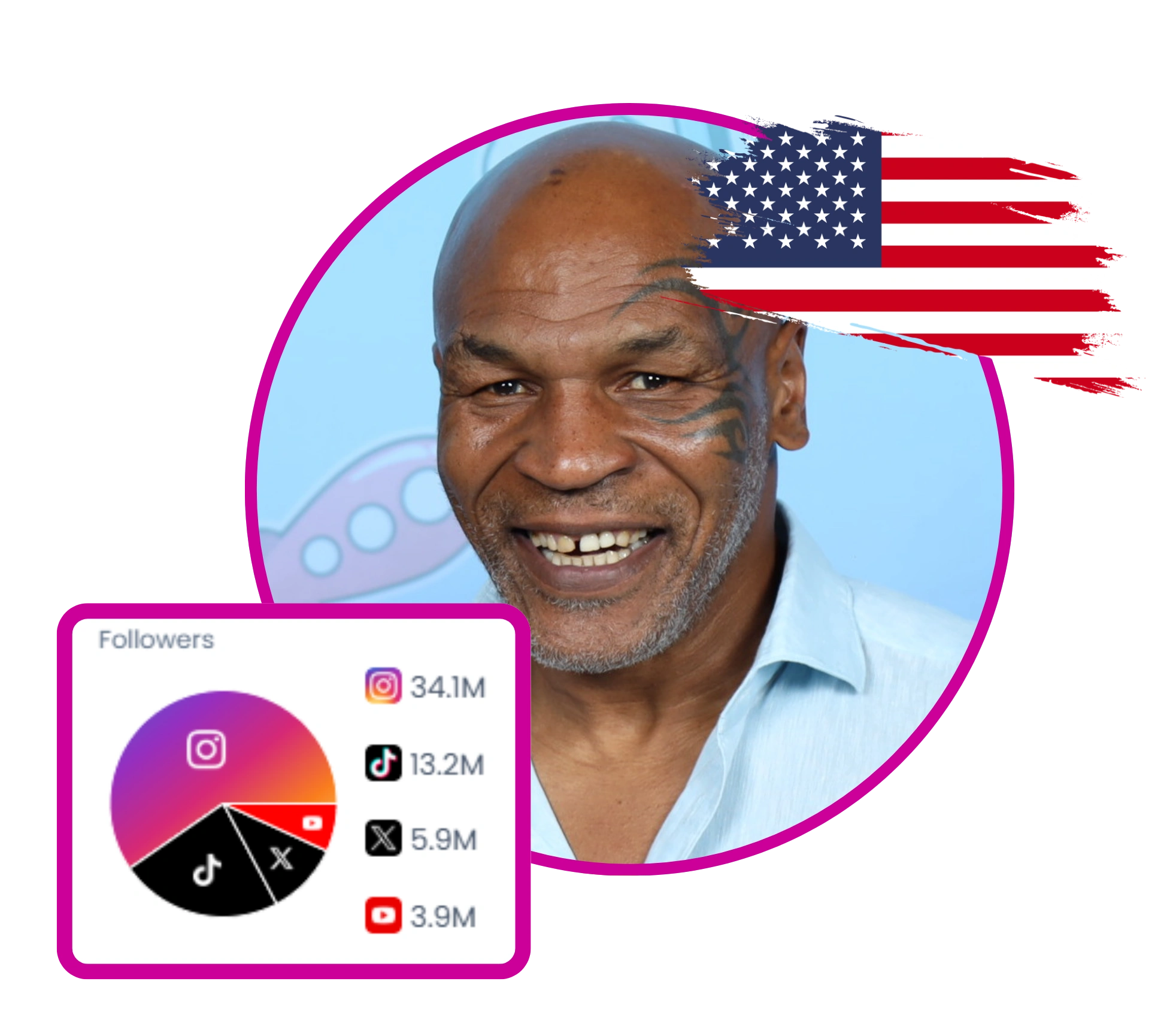 Mike Tyson, boxing legend and philanthropist, maintains a high-profile social media presence across Instagram, TikTok, YouTube, and Twitter. He promotes MTI, boxing events, the Tyson Foundation, and brand partnerships; content spans event promos, behind-the-scenes shows, travel, and charitable initiatives.