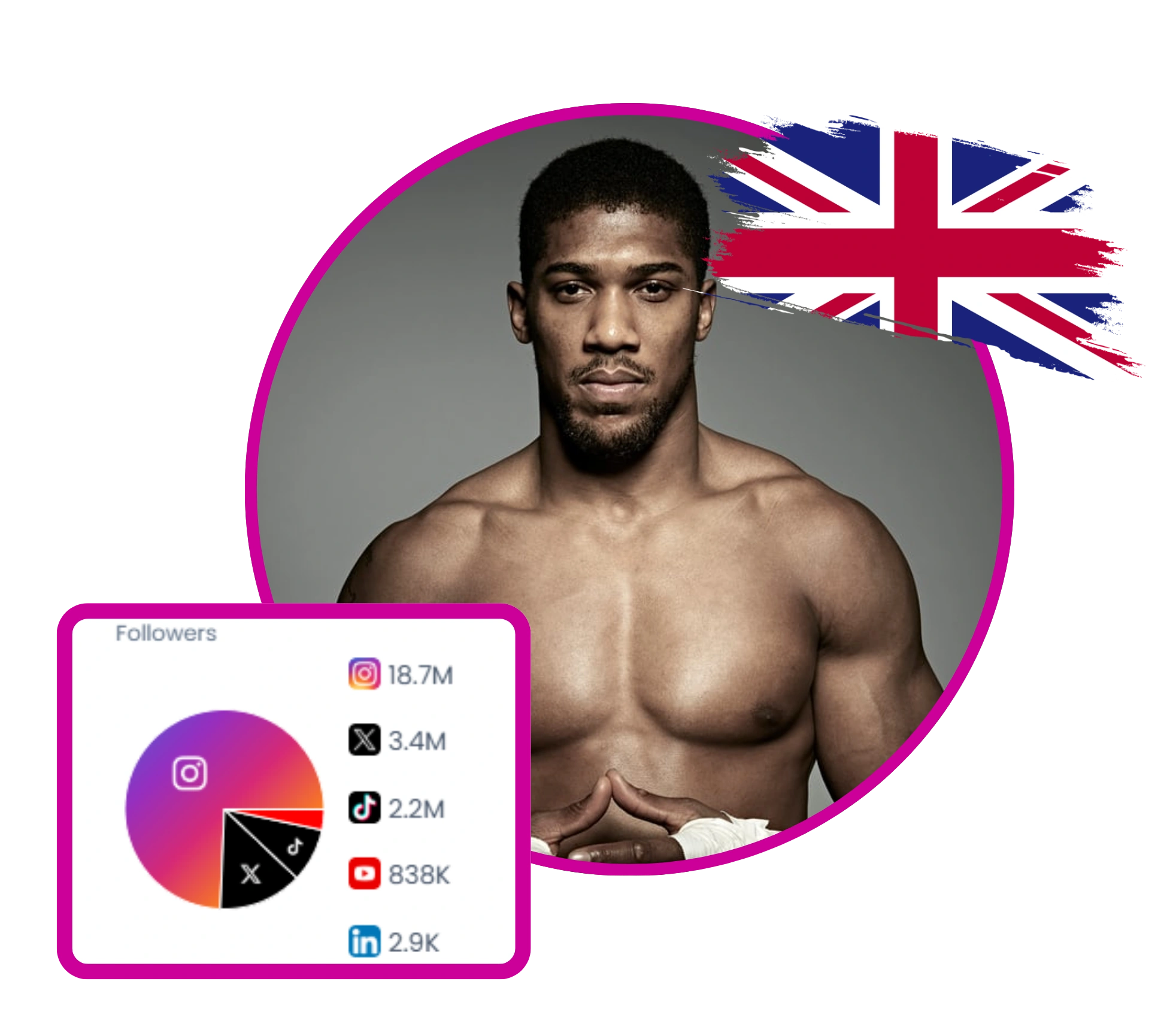 Anthony Joshua, also known as Anthony Oluwafemi Olaseni Joshua MBE, is a professional boxer and the WBC International, British, Commonwealth, and IBF World Heavyweight Champion. He shares content related to his boxing career, including training sessions, fight promotions, and post-fight reflections. Joshua also engages with his audience through personal messages, tributes to friends and colleagues, and promotions of brand partnerships. His posts often highlight his dedication to fitness, community involvement, and cultural experiences.