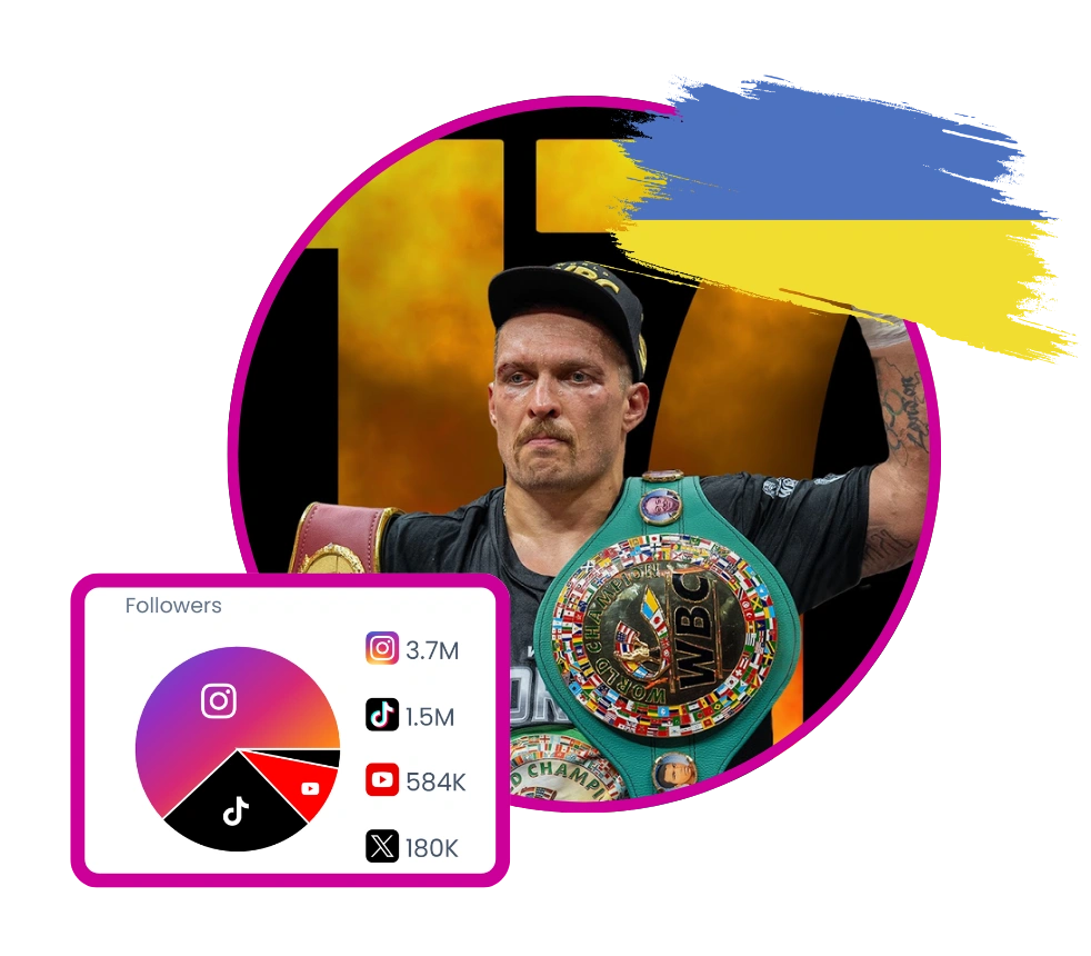 Oleksandr Usyk is a three-time undisputed heavyweight boxing champion, co-founder of @rtfight_com, and a prominent figure in the sports world. He shares insights into his training, personal life, and boxing career across platforms like Instagram, TikTok, YouTube, and Twitter. Usyk frequently posts about his matches, motivational speeches, and public appearances, often emphasizing themes of discipline, faith, and resilience. He also engages in collaborations, product promotions, and real estate ventures, showcasing a multifaceted public presence.