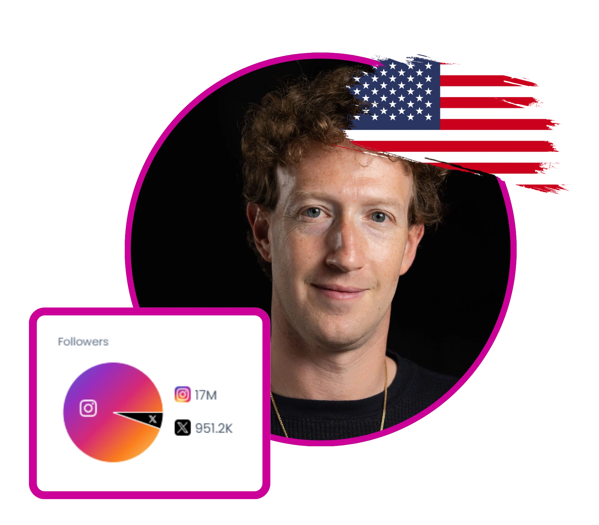 Mark Zuckerberg is the CEO of Facebook, known for his innovative contributions to social media and technology. His social media presence highlights advancements in AI, AR, and VR, with a focus on free expression and community engagement. He often shares updates on Meta's latest products, such as Ray-Ban Meta glasses and AI models, and engages with followers on tech developments. Zuckerberg also promotes pro-internet policies and encourages public discourse.