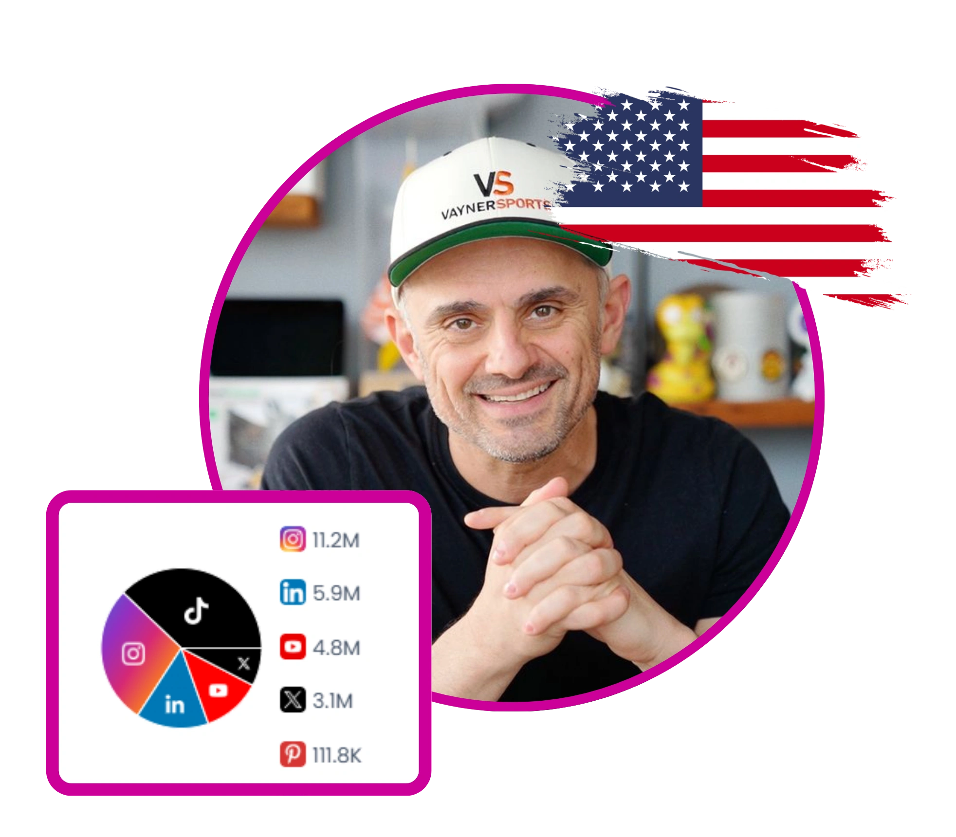 Gary Vaynerchuk, known as GaryVee, is a prominent entrepreneur, CEO of VaynerMedia, and creator of VeeFriends. He is recognized for his insights on business, culture, and social media, with a significant online presence that includes over 50 million followers. Gary is a prolific angel investor and has made early investments in major companies like Facebook and Twitter. His content focuses on entrepreneurship, motivation, and leveraging consumer attention, making him a leading voice in the digital marketing space.