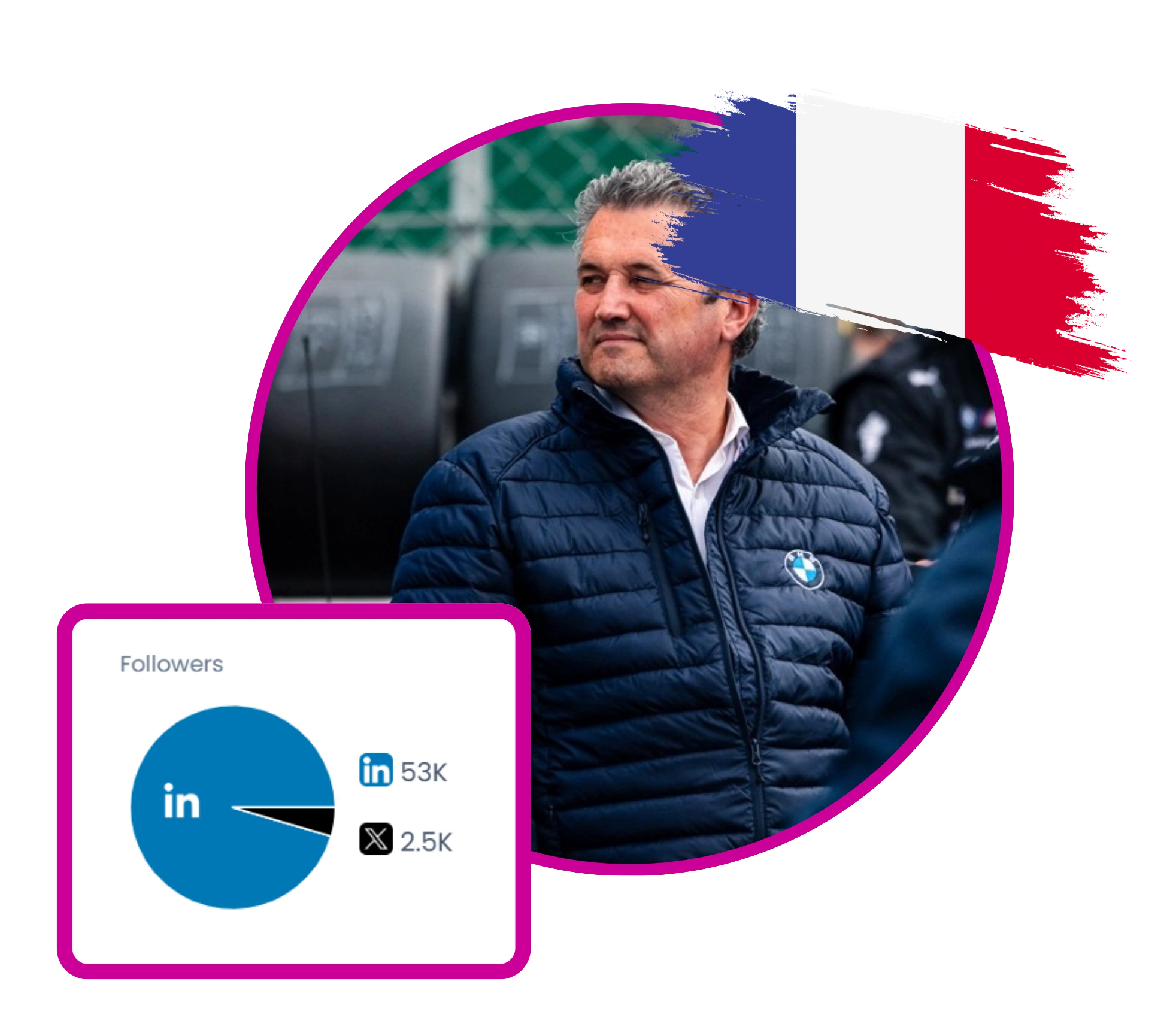 Vincent Salimon is the CEO of BMW Group France, a role he has held for over 30 years. He is deeply engaged in promoting sustainable mobility and fostering an inclusive workplace. His online presence primarily revolves around sharing insights on the future of mobility, BMW's innovations, and the company's achievements. He frequently posts about BMW's latest models, safety ratings, and environmental initiatives, often highlighting the company's leadership in the automotive industry. Vincent also emphasizes the importance of customer satisfaction and employee recognition, frequently sharing milestones and achievements of BMW Group France. His content is heavily focused on the automotive industry, with a strong emphasis on BMW's role in shaping the future of mobility.