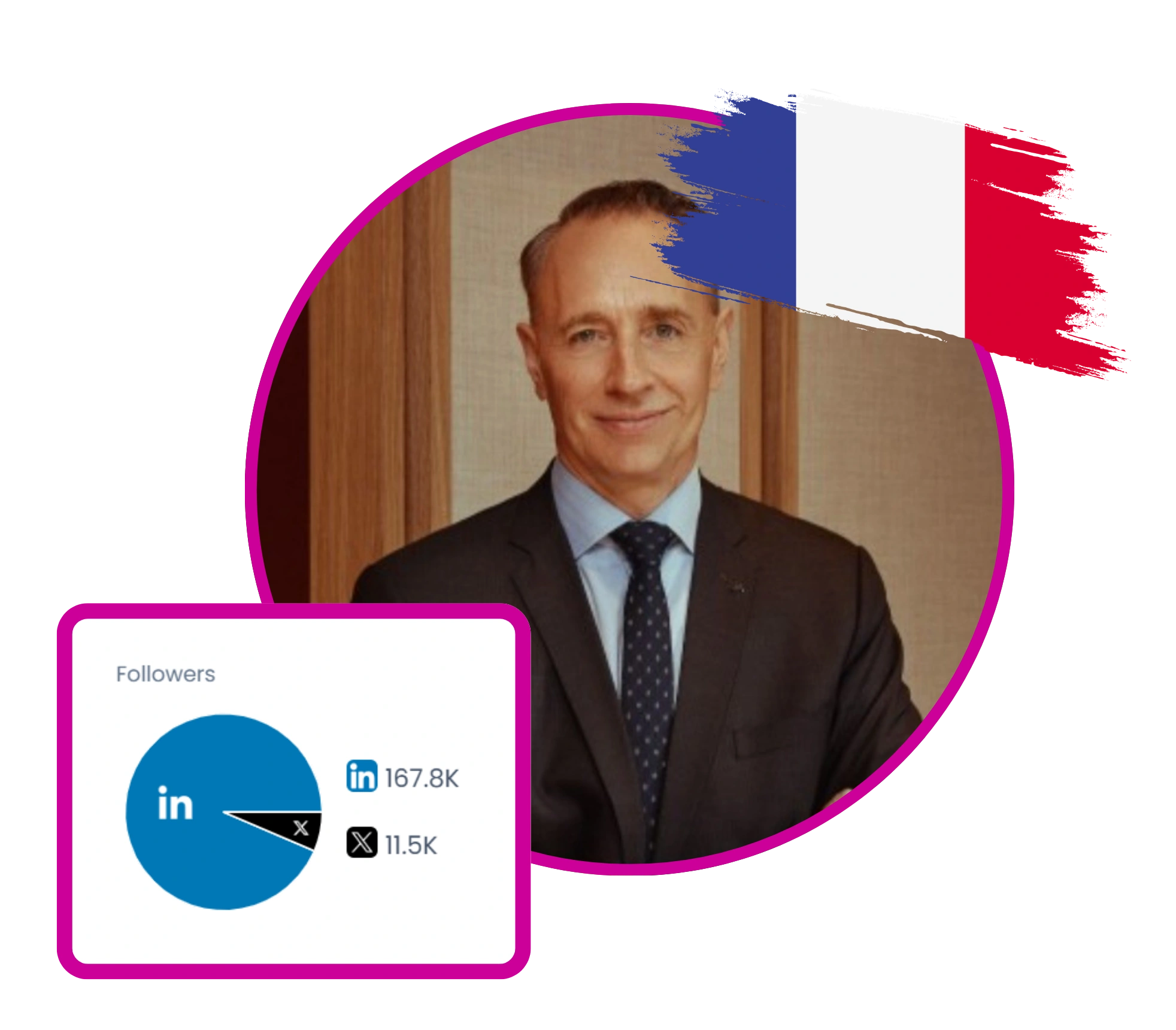 Alexandre Bompard is the Chairman and CEO of Carrefour Group, a leading global retail company. He frequently shares insights on business strategies, leadership, and retail innovations through interviews, public appearances, and social media posts. His content often highlights Carrefour's initiatives, partnerships, and corporate social responsibility efforts, including sustainability, fair wages for farmers, and community engagement. Bompard engages with a global audience, leveraging platforms like LinkedIn, Twitter, and TikTok to discuss industry trends, share personal experiences, and promote Carrefour's brand.