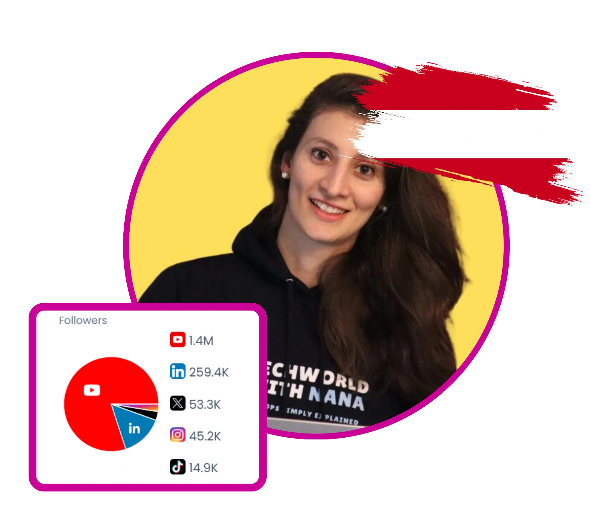 Nana Janashia is a co-founder of TechWorld with Nana, a leading DevOps and Cloud education platform with over 1.3M YouTube subscribers. She creates tutorials and courses focused on DevOps, Docker, Kubernetes, CI/CD pipelines, and cloud technologies. As a Docker Captain and AWS Container Hero, she provides hands-on, project-based learning to help engineers transition into DevOps roles. Her content ranges from beginner-friendly IT fundamentals to advanced DevSecOps concepts, often featuring real-world scenarios and interview-style discussions with industry experts. She also shares insights from her entrepreneurial journey in building an online education business.