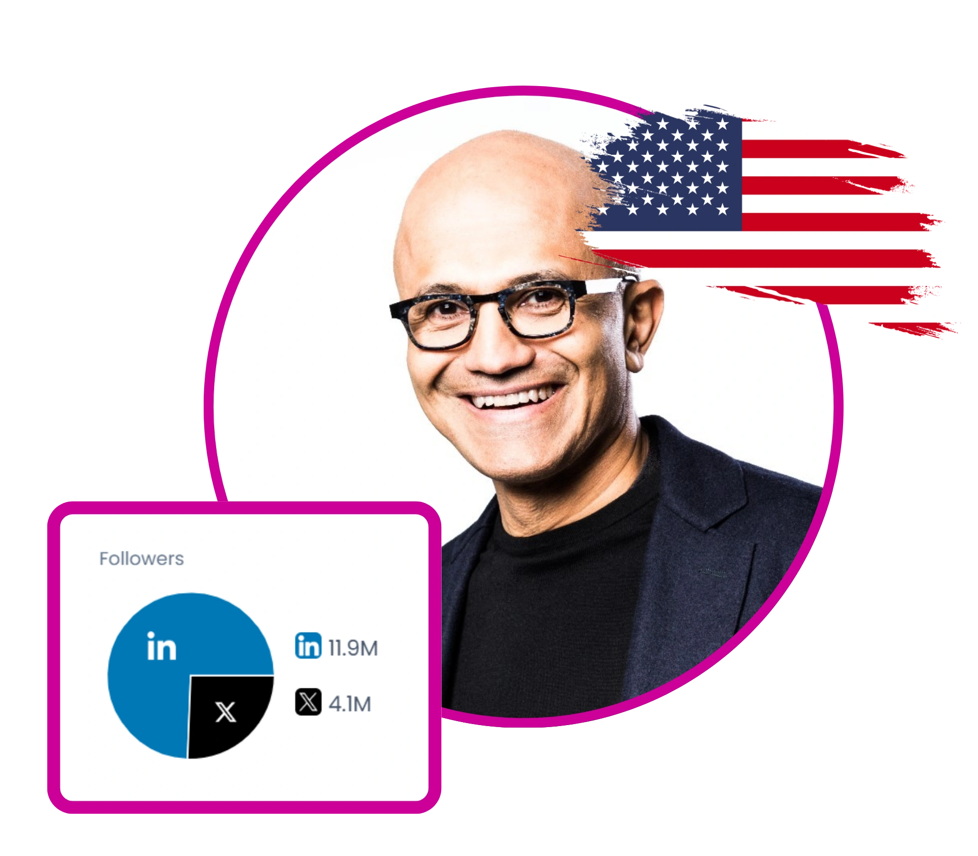 Satya Nadella is the Chairman and CEO of Microsoft, focusing on empowering individuals and organizations globally through technology. His online presence primarily revolves around promoting Microsoft's latest innovations, particularly in AI and cloud computing. He frequently shares updates on new products like Microsoft Azure Maia 200 chip, GitHub Copilot, and AI advancements. Nadella also engages in discussions with political leaders and industry experts, emphasizing the role of AI in societal and economic transformation. His content is largely educational and promotional, aimed at showcasing Microsoft's technological leadership and its impact on various industries.