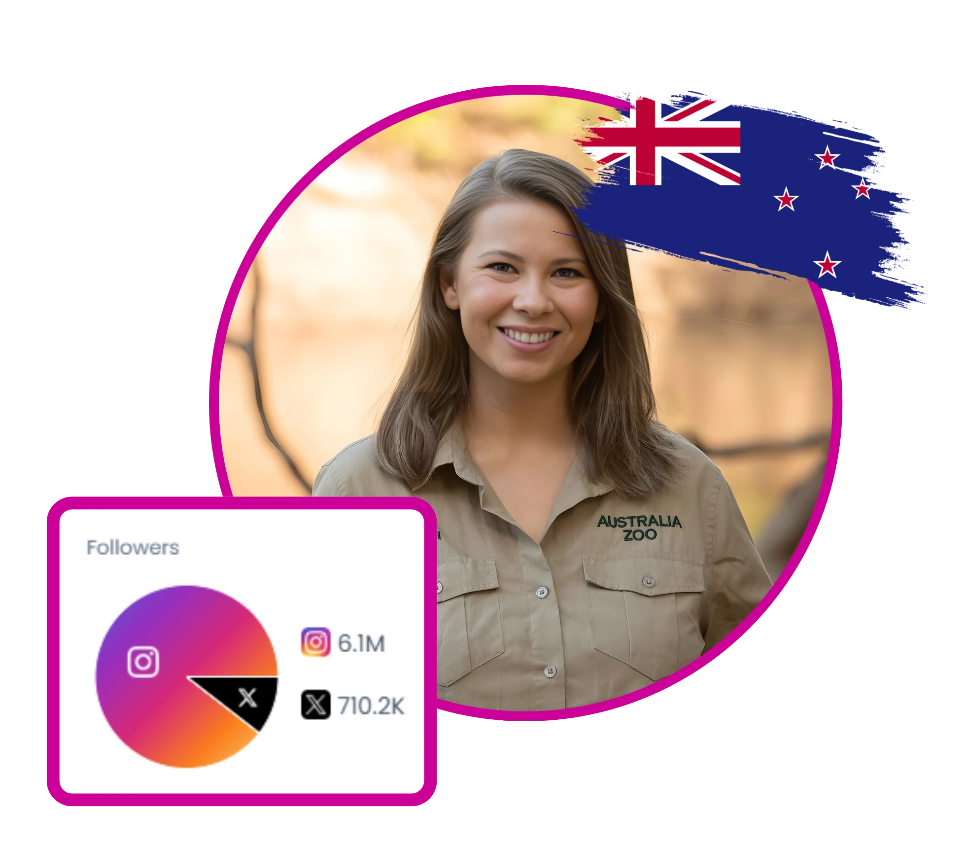 Bindi Irwin is a prominent wildlife conservationist and public figure based at Australia Zoo in Queensland, Australia. She actively shares her experiences with wildlife, family life, and conservation efforts through social media. Her content includes educational posts about animal care, personal moments with her family, and promotions for Australia Zoo and its initiatives. Bindi also highlights her achievements, such as her participation in 'Dancing With The Stars,' and collaborates with organizations like Wildlife Warriors Worldwide to advocate for wildlife protection.