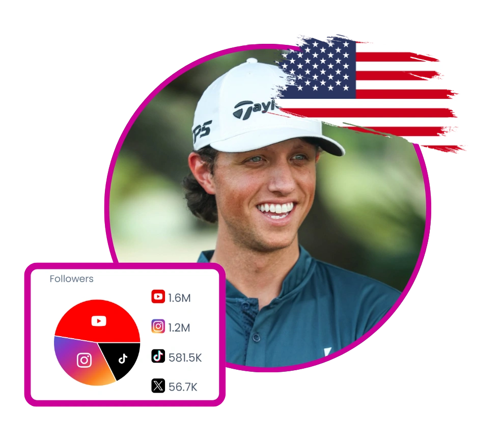 Grant Horvat is a passionate golf content creator and YouTuber known for engaging golf challenges and collaborations with professional golfers. He promotes golf apparel and equipment through his channels, showcasing his skills and experiences on the course. His content includes lessons from golf legends, competitive matches, and humorous interactions, appealing to golf enthusiasts and aspiring players alike. He actively engages with his audience, sharing insights and personal experiences related to the sport.