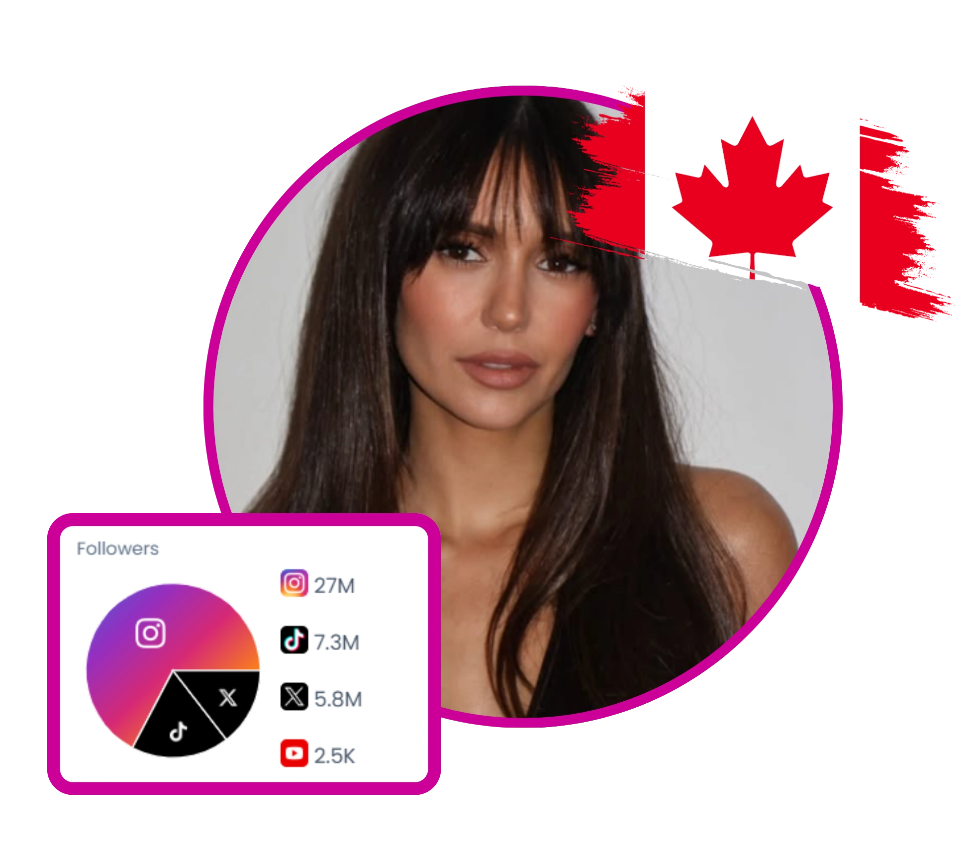 Canadian actress Nina Dobrev maintains a high-profile social presence centered on film, fashion, and premiere events. She shares glamorous, candid captions, collaborates on beauty and lifestyle brands, and drops merch. Known for red carpet coverage, travel vibes, and behind-the-scenes moments, with ongoing support for fellow artists.
