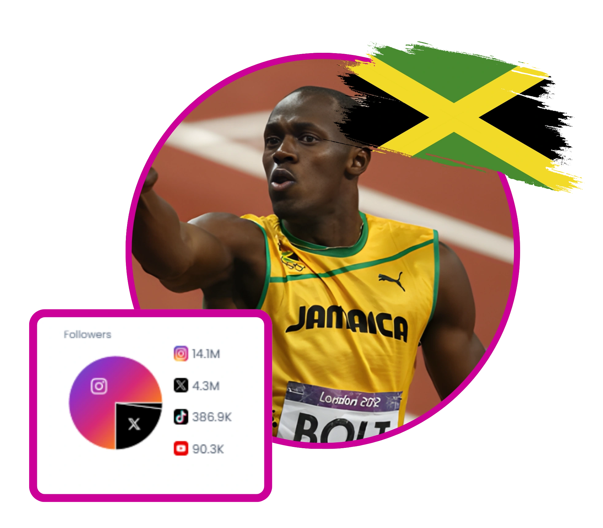 Usain Bolt is an iconic Jamaican sprinter, renowned as the fastest man in the world. He has achieved unprecedented success, winning gold medals in the 100m and 200m events across three consecutive Olympic Games. His social media presence reflects his athletic achievements, motivational messages, and cultural pride, often celebrating Jamaican heritage and influential figures like Bob Marley. Bolt engages with fans through inspirational quotes and personal reflections, showcasing his personality beyond athletics.