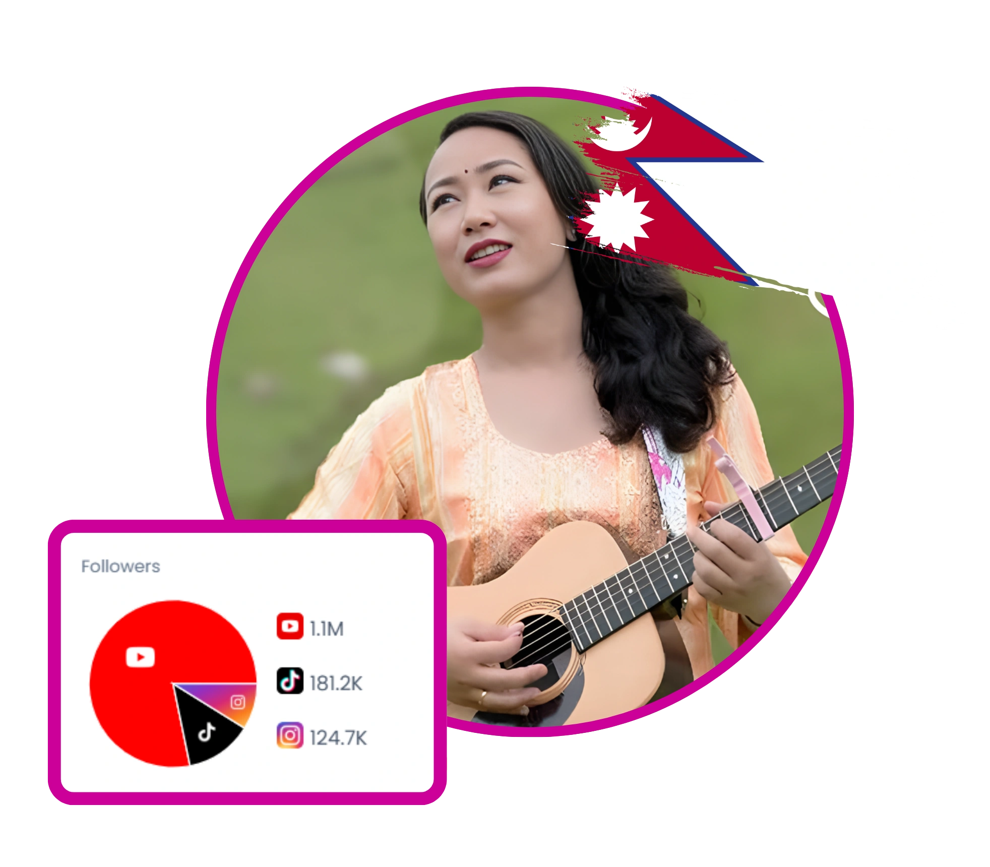 Nepalese TikTok musician/content creator known for Teej-themed songs, collaborations with Nepali singers, and festival content; promotes concerts and film soundtracks (e.g., Teej tours Australia, Melbourne 2025); occasionally shares social issues commentary, signaling advocacy alongside entertainment.