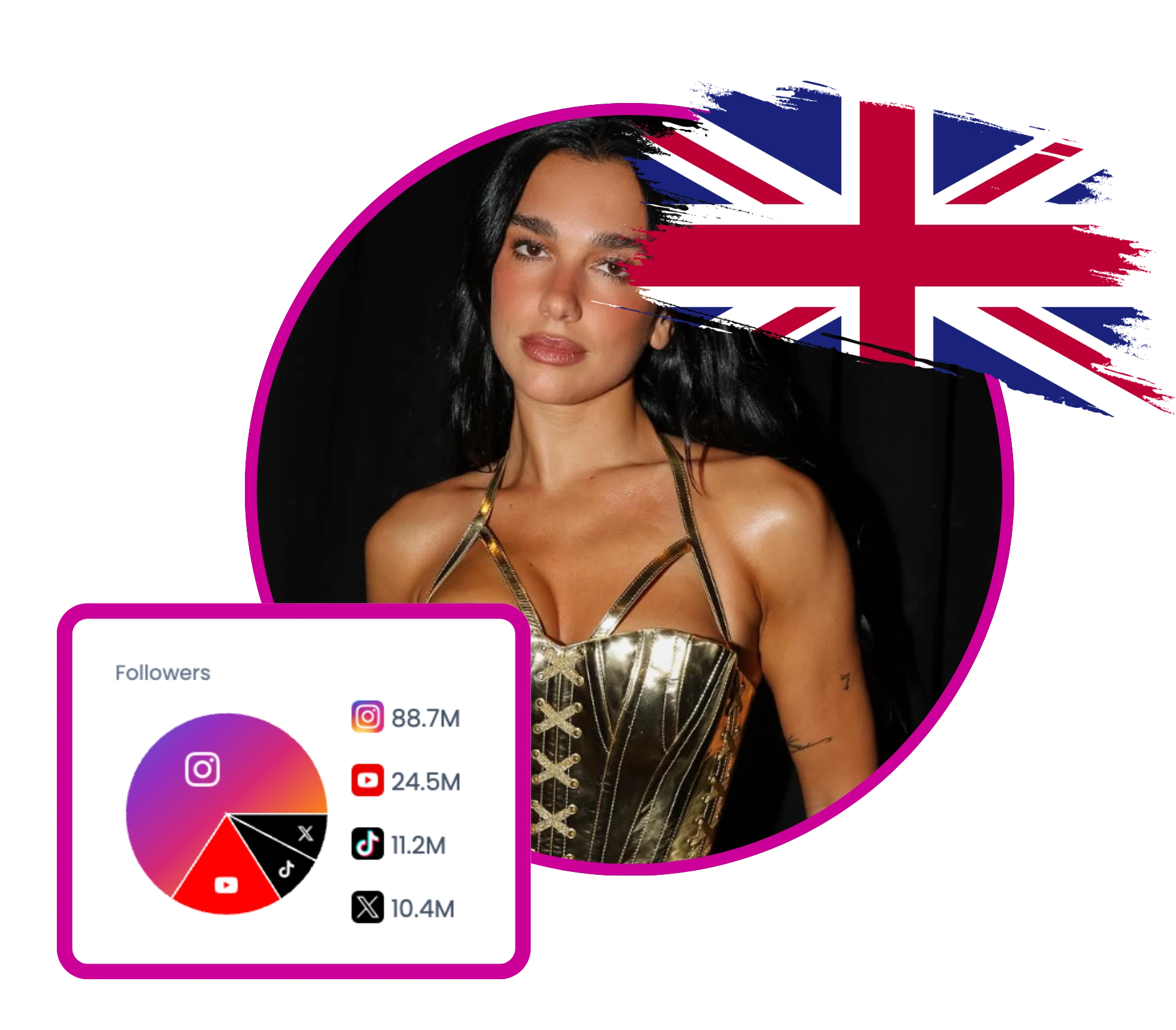 Dua Lipa is a globally recognized British singer and songwriter known for her hit singles and critically acclaimed albums. Her social media presence is vibrant and engaging, showcasing her music releases, live performances, and collaborations with other artists. Dua Lipa actively promotes her latest album 'Radical Optimism' and shares behind-the-scenes content, reflecting her passion for music and creativity. She also engages with her audience through her book club and various philanthropic efforts.