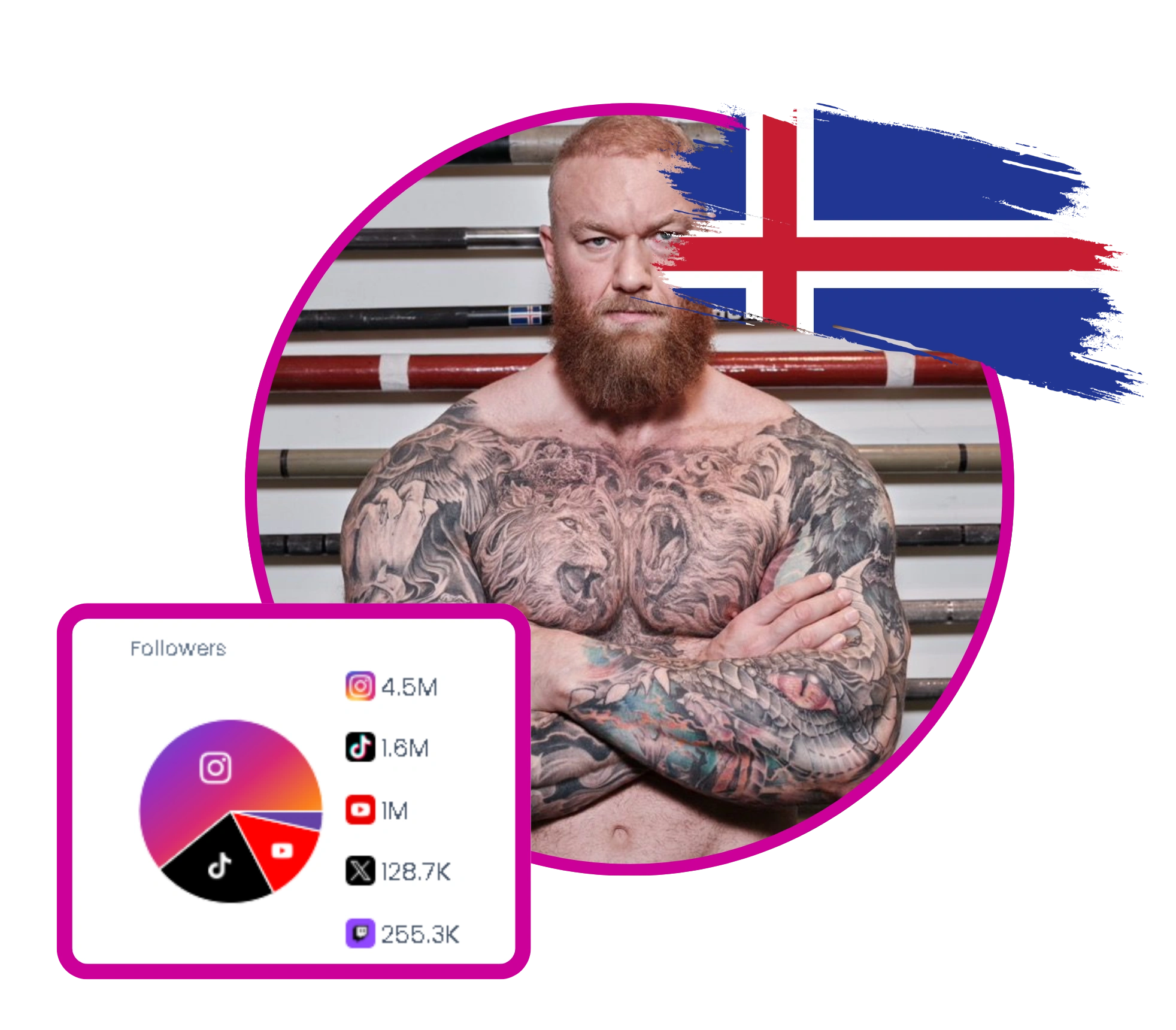 Hafthor Bjornsson, known as 'The Mountain', is a prominent strongman competitor and actor. He shares content focused on strength training, fitness, and personal development, often promoting his gym and training programs. His posts frequently feature sponsorships and collaborations with fitness brands, showcasing his journey in the strongman community. He engages with his audience through motivational content and updates on competitions, emphasizing health and wellness.
