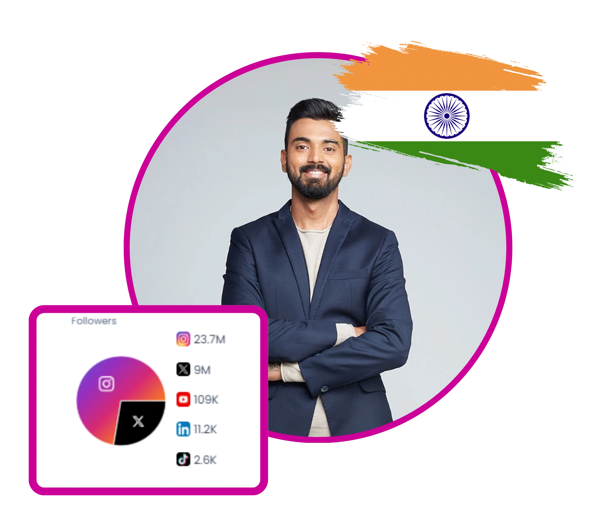 KL Rahul is a professional Indian cricketer known for his dynamic batting style and significant contributions to the national team. His social media presence showcases a blend of personal moments, professional achievements, and brand collaborations, particularly in the lifestyle and sports sectors. He engages with fans through motivational content and shares insights into his cricketing journey, while also promoting various brands and products, reflecting a strong connection with his audience.