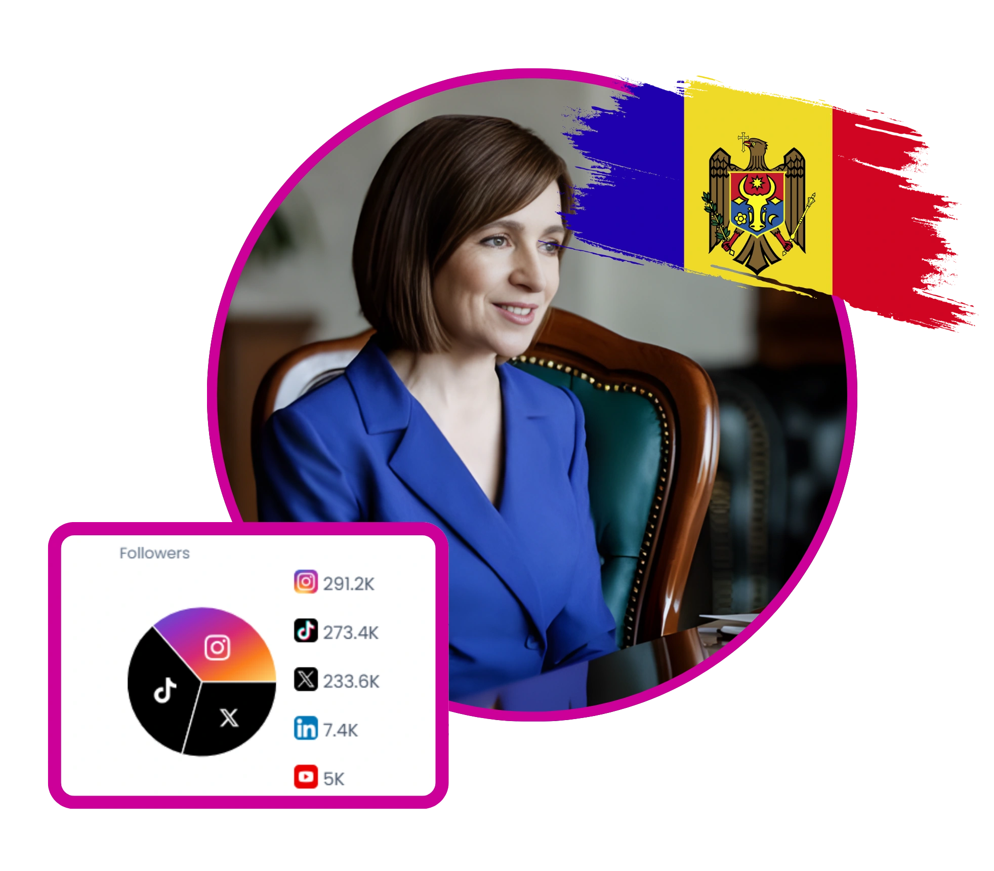 Maia Sandu is Moldova's president, leading pro-EU reforms, democracy, and national security. Her social presence centers on Moldova’s EU integration, anti-disinformation efforts, youth engagement, and remembrance of history, with advocacy for education, online safety, and civil rights.