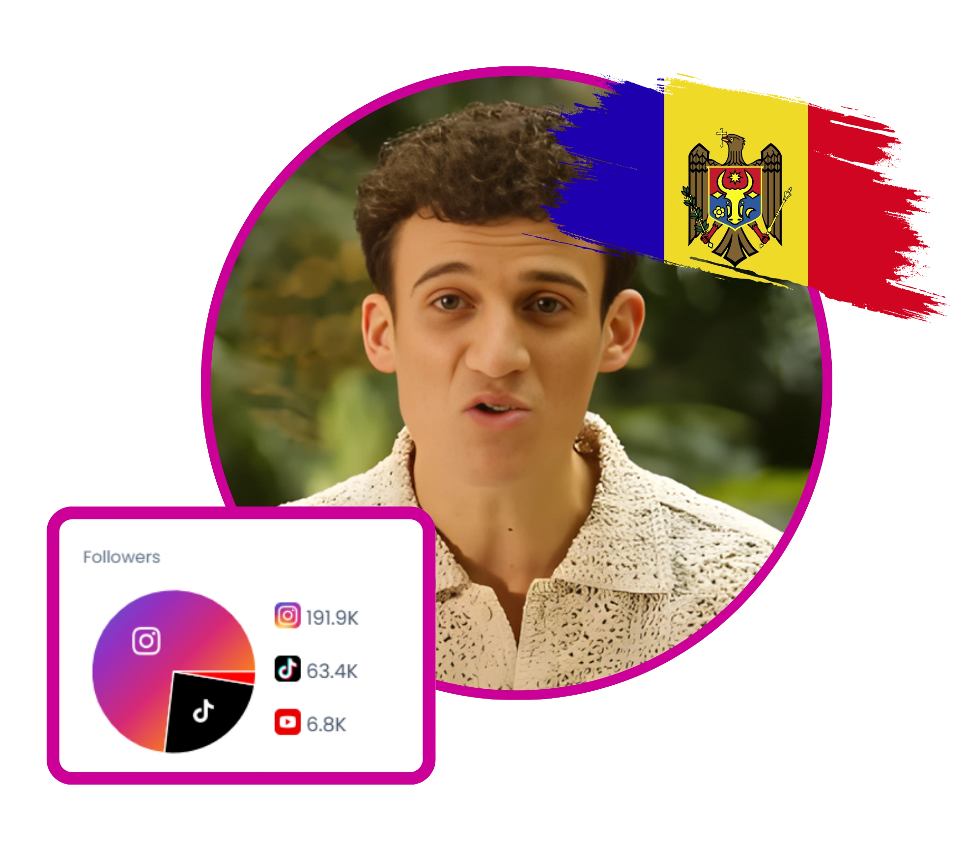 Moldovan singer–songwriter known as Satoshi, Eurovision 2026 hopeful representing Moldova with Versus Artist. Active on Instagram, TikTok, and YouTube, focusing on Eurovision news, live performances, and cross-border collaborations (Irina Rimes, Vasile Advahov, Aliona Moon). Content highlights original releases, European tours, and national pride in music.