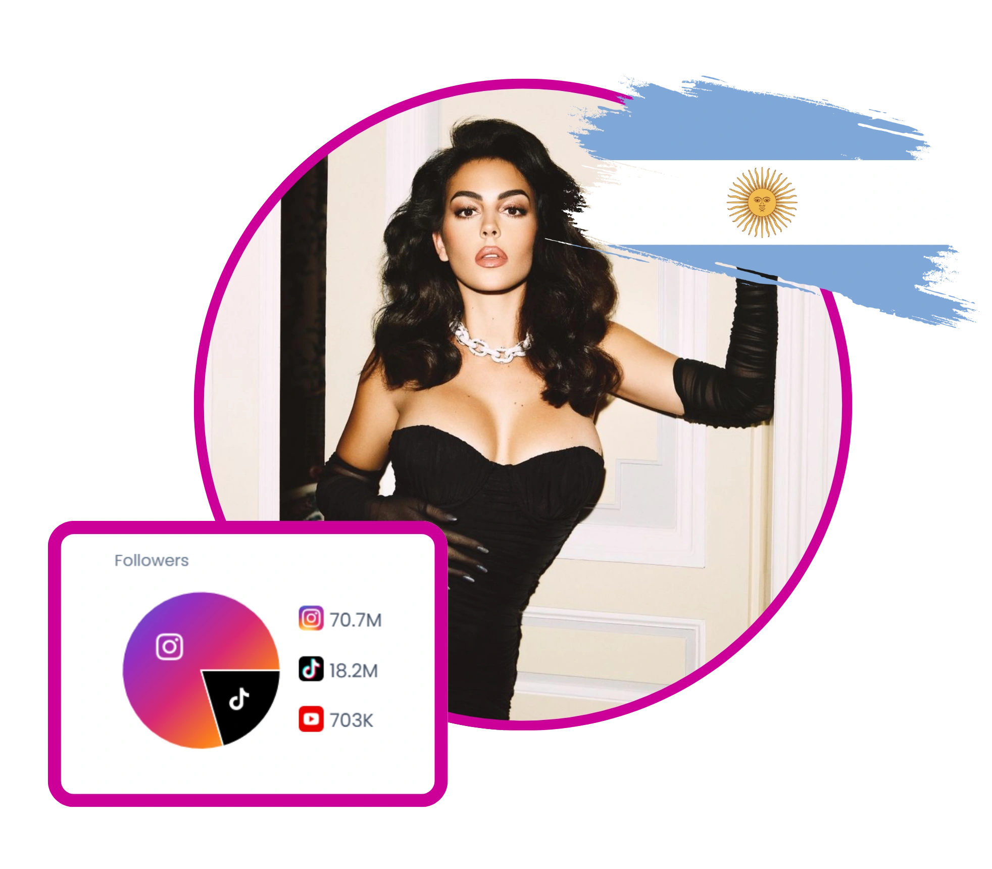 Georgina Rodríguez is a prominent social media personality known for her glamorous lifestyle and family-oriented content. She frequently shares moments from her travels, fashion campaigns, and personal life, often highlighting her relationship with Cristiano Ronaldo. Her posts reflect a love for luxury brands and high fashion, with collaborations with major brands like Dior and Guess. Georgina also expresses a deep appreciation for family, often mentioning her children and partner.