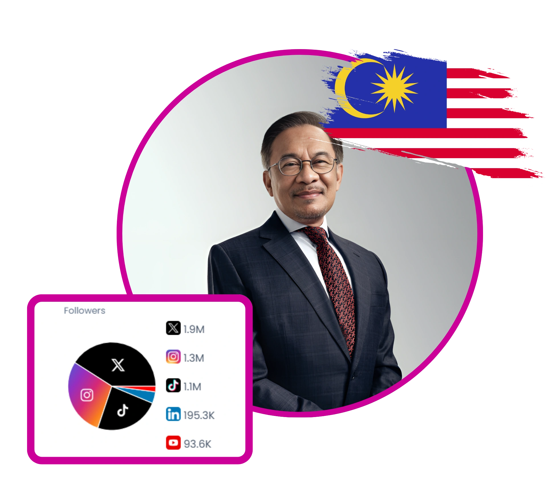 Anwar Ibrahim is the Prime Minister of Malaysia, actively engaging in political discourse and international relations. He emphasizes unity among diverse communities and advocates for social justice, economic development, and cultural heritage. His posts reflect a commitment to strengthening Malaysia's ties with Turkey and addressing humanitarian issues, particularly concerning Palestine. Anwar is also a family man, highlighting his roles as a husband and father, which resonates with his audience.