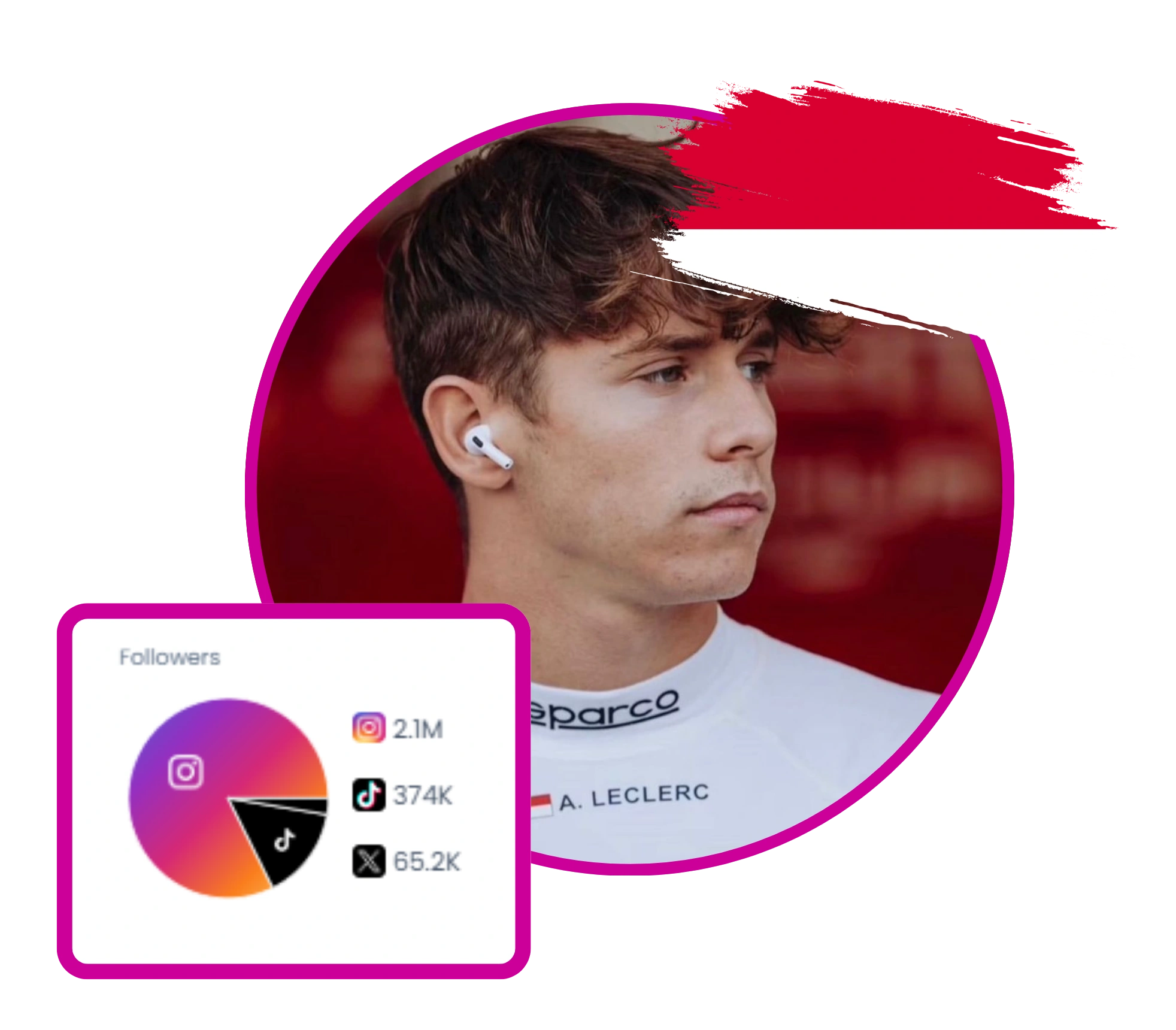 Charles Leclerc is a prominent Formula 1 driver for Scuderia Ferrari, known for his impressive performances on the track. He shares behind-the-scenes moments, race highlights, and personal experiences with his audience across various social media platforms. Leclerc's content often features his achievements, such as winning races in Monaco and Monza, and his dedication to improving as a driver. He engages with fans by sharing training routines, personal milestones, and collaborations with teammates.