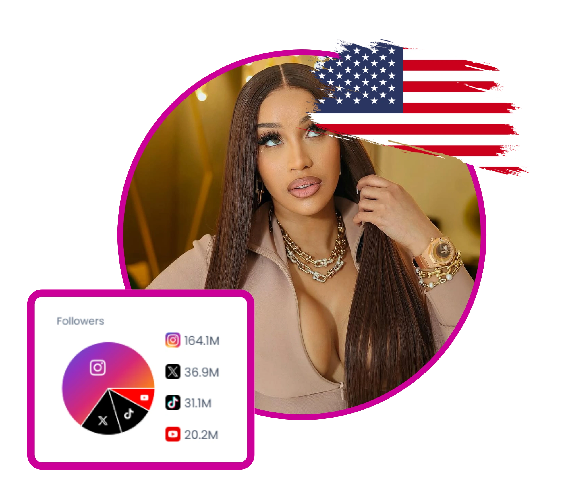 Cardi B is a Grammy Award-winning rapper and entertainer known for her dynamic presence in the music industry. She has achieved significant milestones, including her debut album 'Invasion of Privacy' reaching #1 on the Billboard 200 chart and all tracks being RIAA certified Gold or higher. Cardi B is also recognized for her engaging social media presence, where she shares personal stories, supports fellow artists, and discusses political topics. Her content often blends humor, personal anecdotes, and cultural commentary.