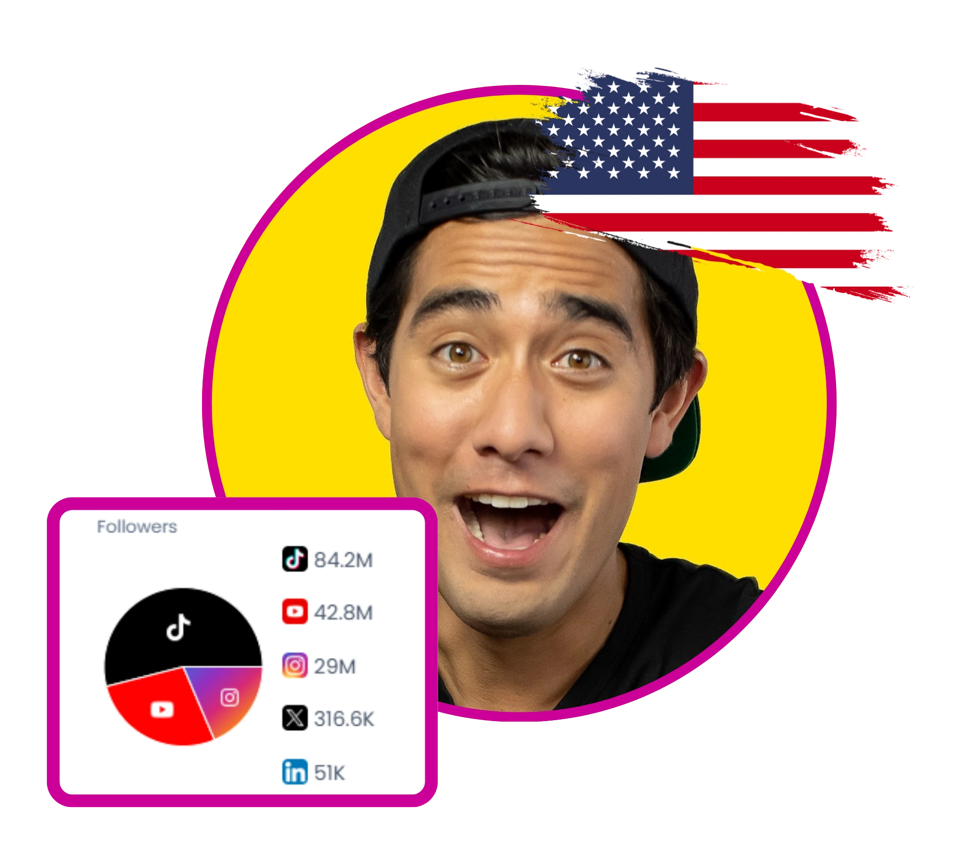 Zach King is a renowned digital magician and filmmaker known for his short magical videos that captivate over 100 million followers worldwide. He operates a film studio in Los Angeles, creating content that surprises and inspires. Zach collaborates with notable artists and engages in fostering creativity among aspiring filmmakers through competitions. His social media presence is marked by a blend of wonder, imagination, and educational content, often featuring collaborations with brands and artists.