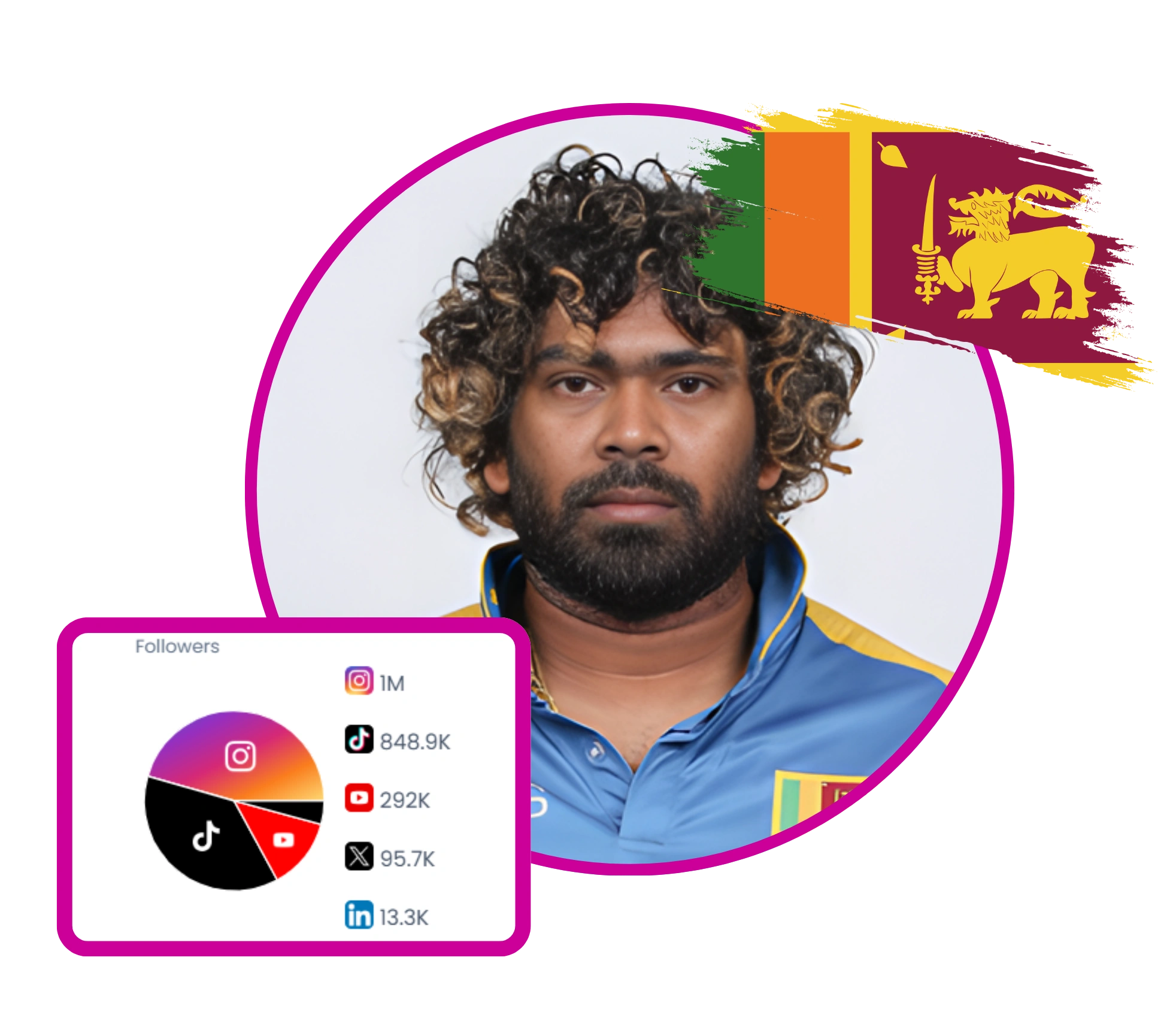 Lasith Malinga is a retired Sri Lankan cricketer known for his exceptional fast bowling skills and unique round-arm action. He has a significant online presence, promoting his book 'KILLER', which serves as a guide for fast bowling. Malinga engages with fans through various platforms, sharing personal moments, promoting his merchandise, and teasing upcoming music projects. His content often reflects his cricketing legacy and personal life, appealing to sports enthusiasts and fans alike.