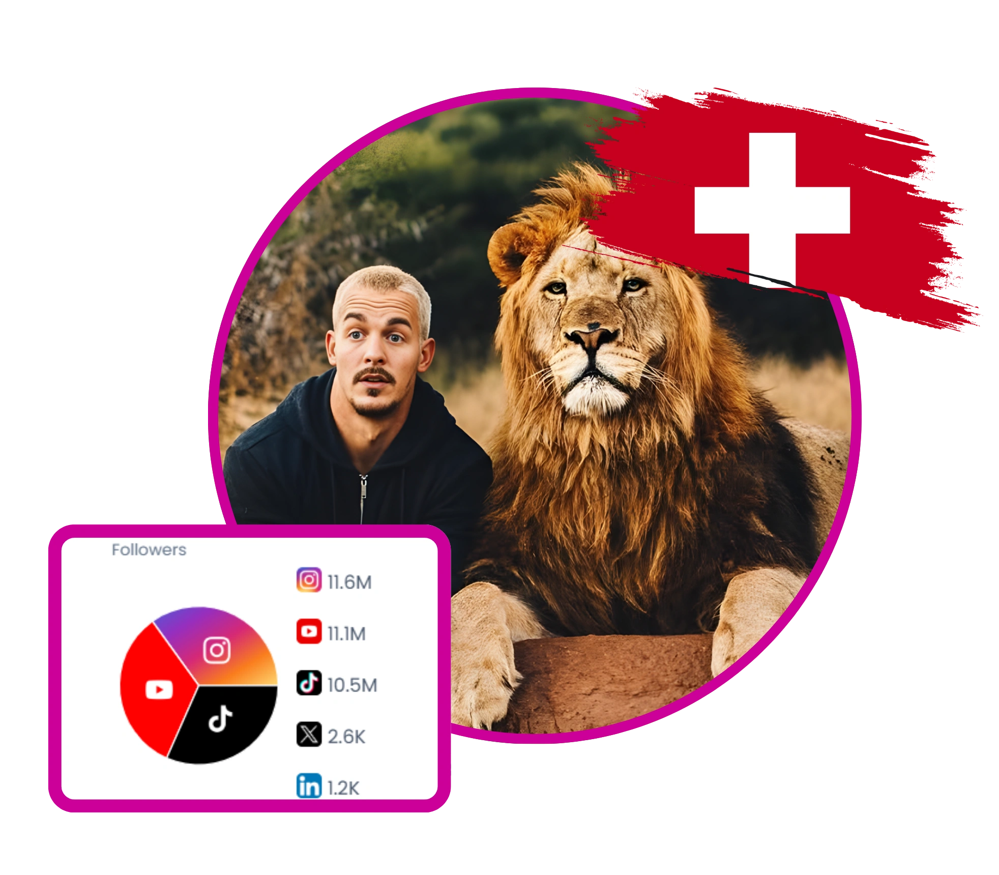 Dean Schneider is a Swiss wildlife advocate living in Africa, dedicated to animal conservation. He shares his experiences living with a lion pride and other wildlife through engaging social media content. His mission is to educate and inspire people about the importance of wildlife preservation. Dean's posts often highlight his interactions with animals, fundraising efforts for his sanctuary, and personal reflections on the challenges and joys of his unique lifestyle. He emphasizes authenticity and connection with nature.