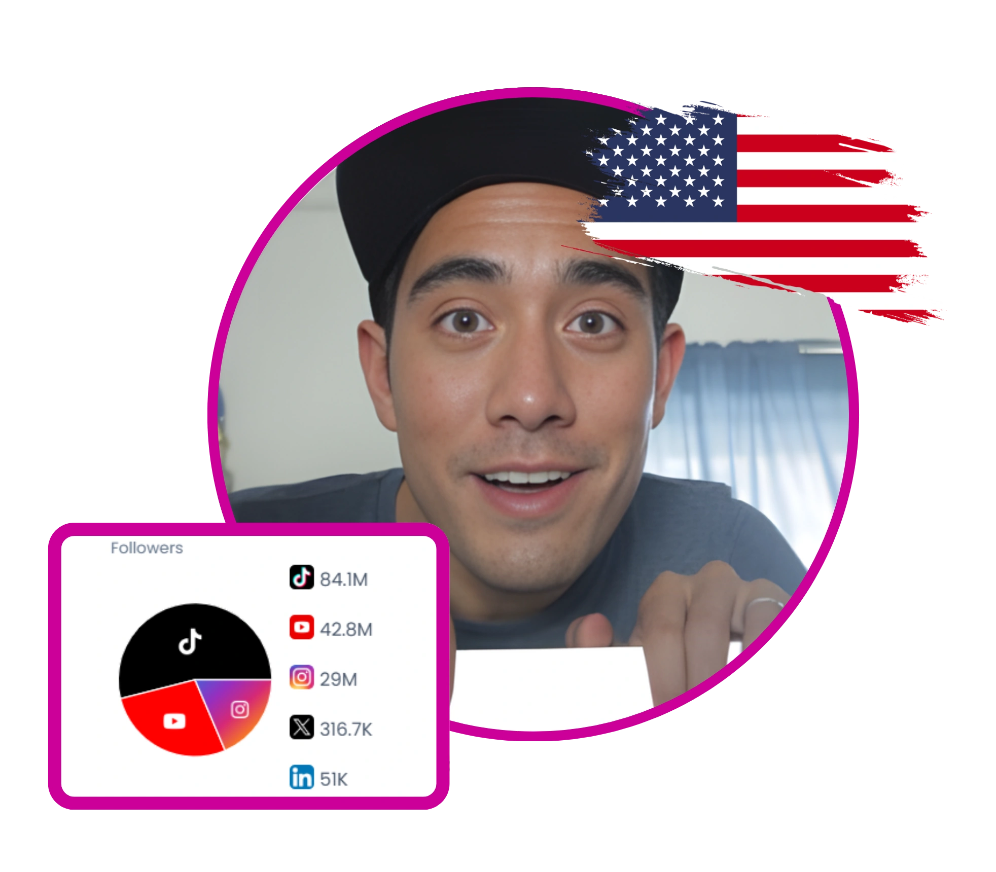 Zach King is a renowned digital magician and filmmaker known for his short magical videos that captivate over 100 million followers worldwide. He operates a film studio in Los Angeles, creating content that surprises and inspires. Zach collaborates with notable artists and engages in fostering creativity among aspiring filmmakers through competitions. His social media presence is marked by a blend of wonder, imagination, and educational content, often featuring collaborations with brands and artists.