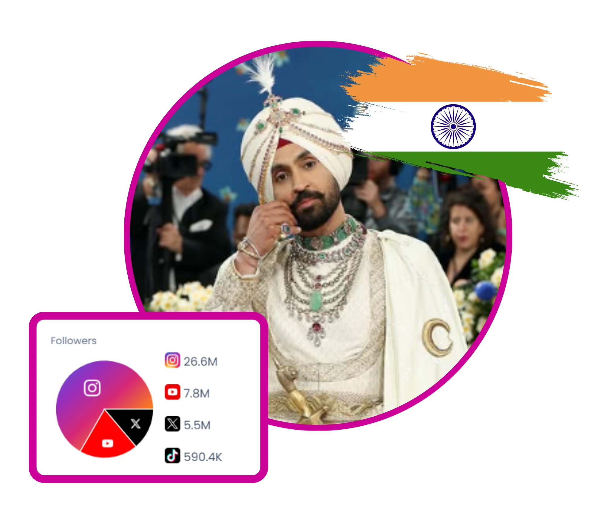 Punjabi-Indian singer and actor Diljit Dosanjh uses global tours, music releases, and cultural storytelling to connect Punjabi roots with a worldwide audience. His social feeds blend tour updates, music videos, and collaborations with fashion and cinema, highlighting a vibrant, family-friendly image and cross-border appeal across Instagram, YouTube, and TikTok.